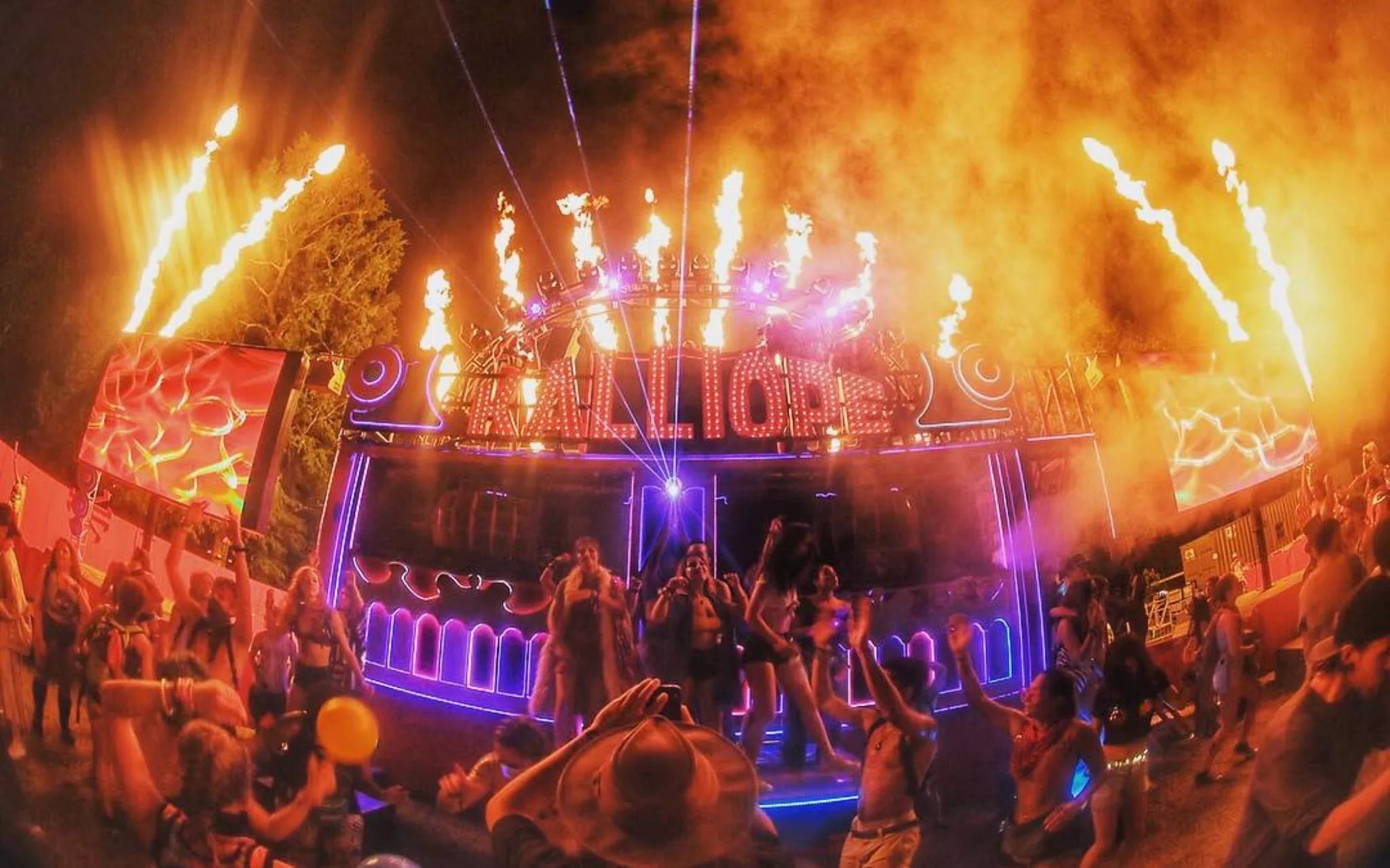 In the middle of this scene is DJ/producer Nox Vahn, who’s performing in front of Kalliope, a double-decker mobile party stage and 70,000-watt sound system adorned in lights. When the house track he’s bumping builds to a massive beat drop, banks of lasers start firing from atop the stage, strobe lights erupt, and the letters spelling out Kalliope‘s name begin flashing.