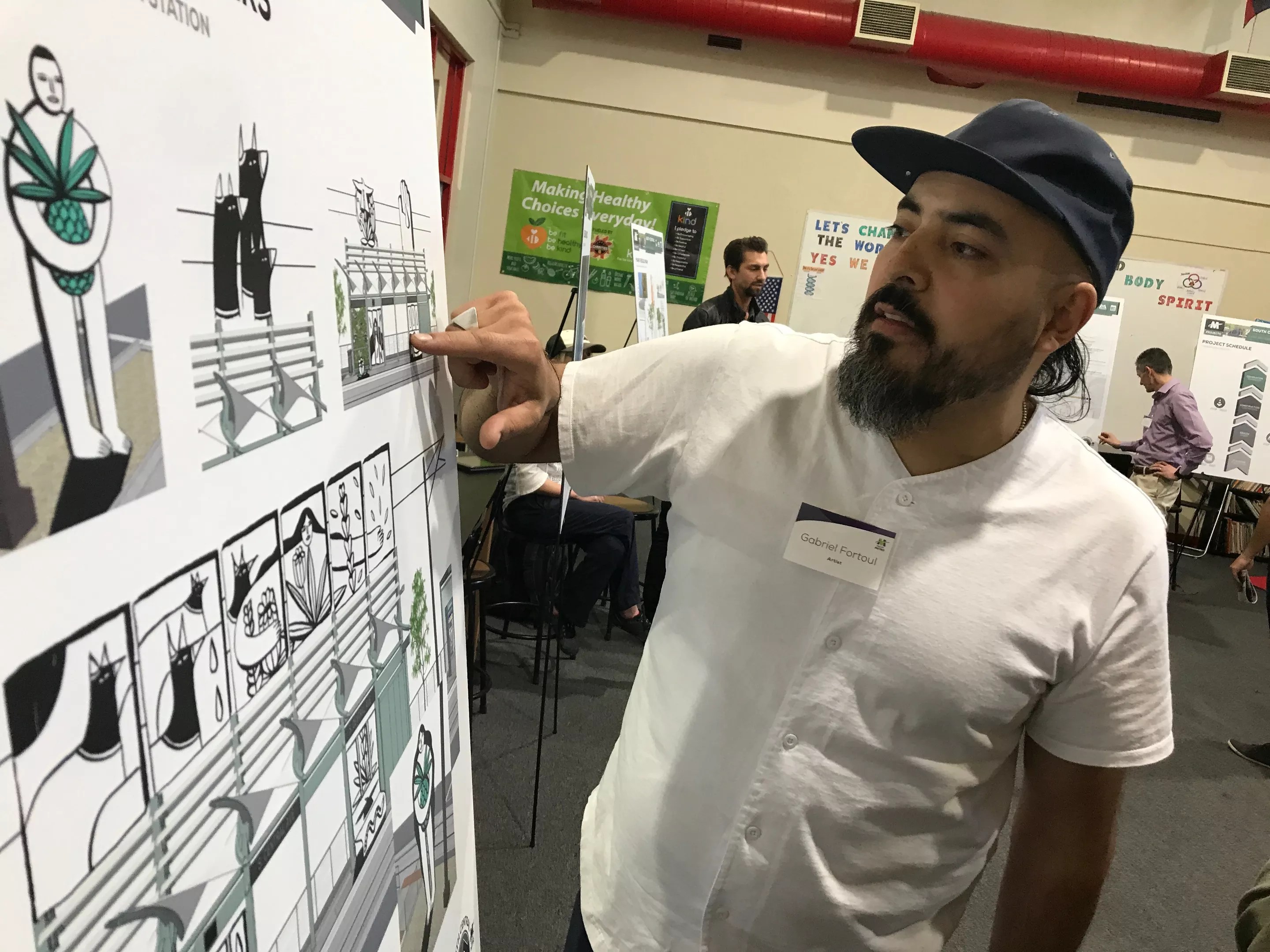 A pre-pandemic meet-and-greet held with artists working on light rail artworks.