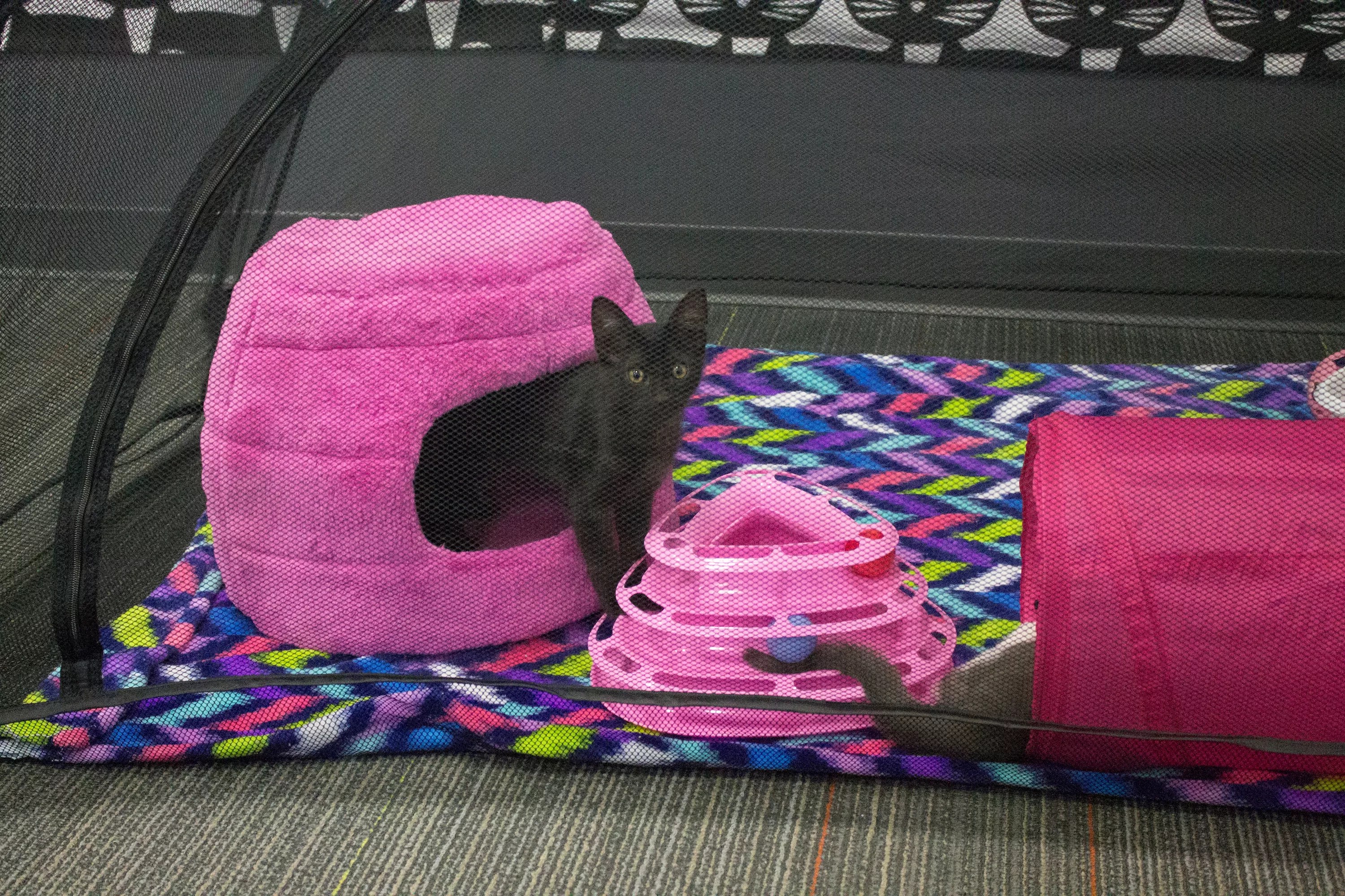 There’s a $150 adoption fee, which helps the shelter cover the cost of having kittens spayed or neutered, and vaccinated.