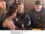 Wild Hogs — in which John Travolta, William H. Macy, Tim Allen, and Martin Lawrence play emasculated suburbanites taking a cross-country motorcycle trip to rediscover their masculinity — doesn’t even sound like a real movie when you describe it to people. They give you that yer-shittin’-me stare, as though it were even possible to make up such a scenario outside of the office of The Player‘s Griffin Mill, who had to endure Buck Henry pitching him The Graduate 2. Then the disbelieving wonder whether the actors — who also include Ray Liotta, Marisa Tomei, Tenacious D’s Kyle Gass, American Choppers‘ Paul Teutul Sr. and Jr., and sex-talker Dr. Drew Pinsky — even shot their scenes together or were filmed on separate soundstages. The thing appears to have been cast by a random generator.