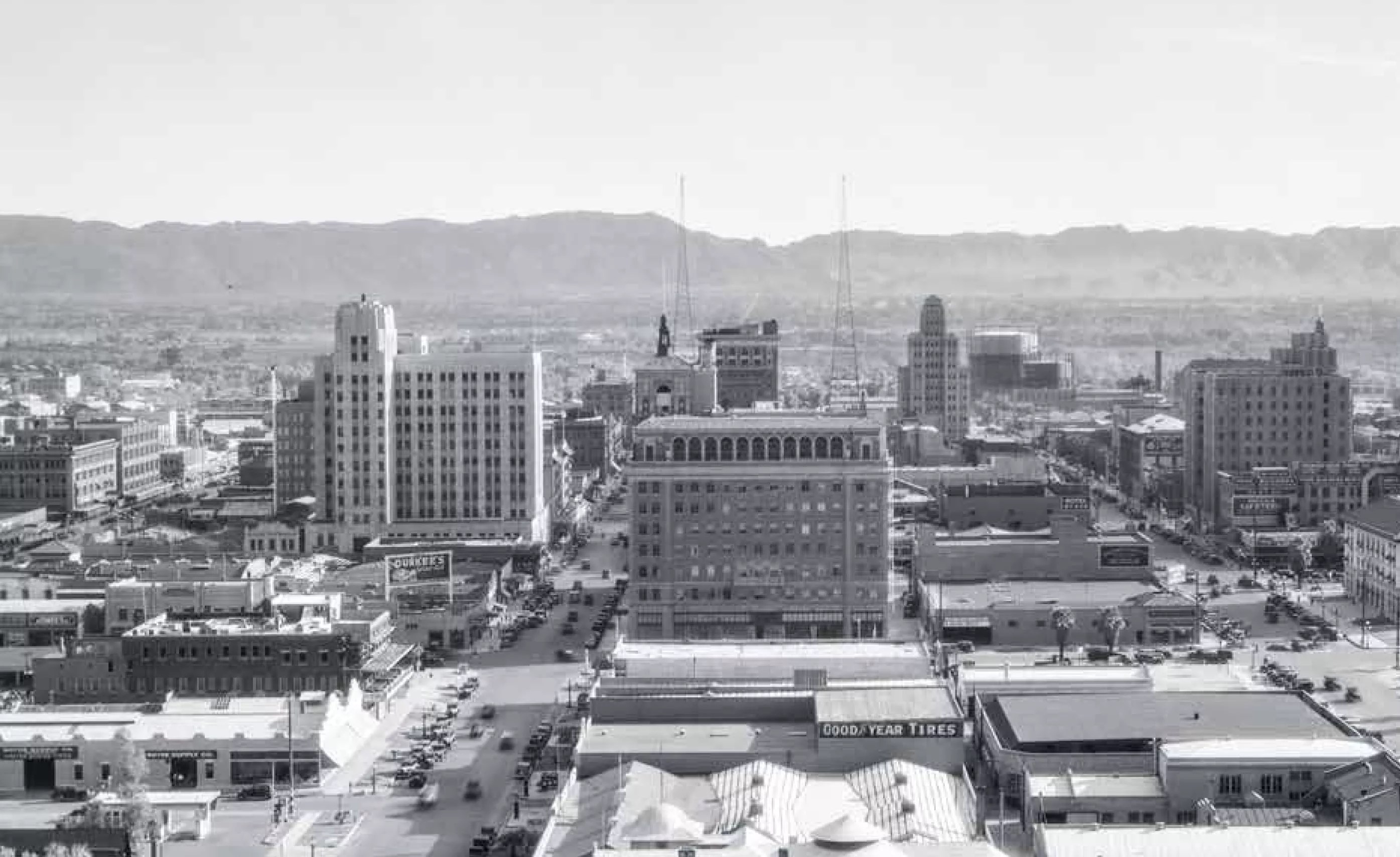 Cervantes’s 1920s images of the Hotel San Carlos, the A.E. England Motors Inc. Building (now an art gallery and coffee shop), and the Pay ‘n’ Takit Store (today home to a boxing club) offer gorgeous glimpses of long-ago local life. Her treasure trove of photos fit neatly with Scharbach’s goal to use as many never-before-seen images as he and his colleagues could find. “That took a lot of extra time and research,” admits Scharbach, who used digital camera technology to recreate old images, some made with antiquated bellows box cameras. Many of the vintage photos came from ASU, which holds the McCullough Brothers archive of commercial photography. The authors kept expanding the page count of the book as they found more and more images of old architecture.
