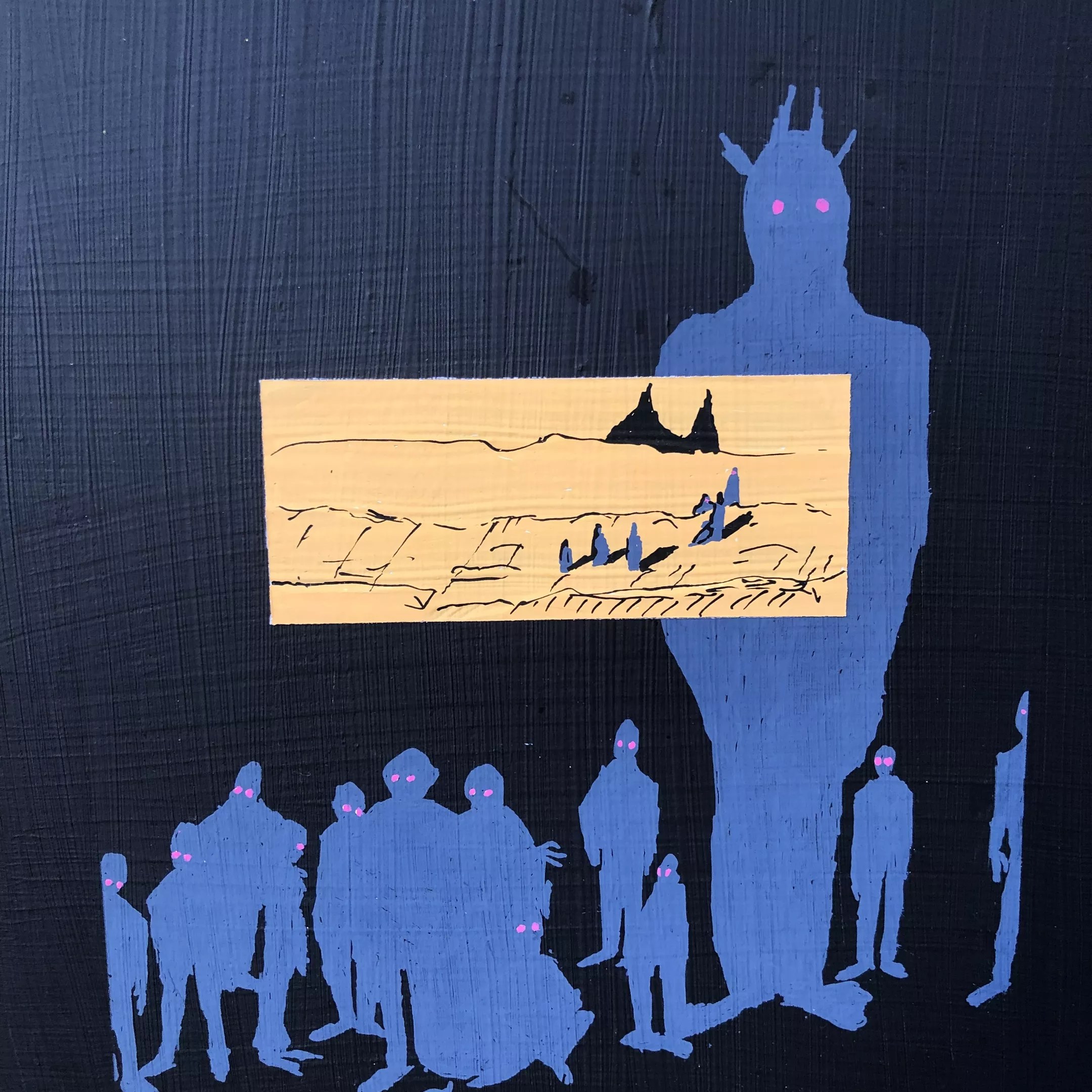 Listening Party, acrylic mixed media