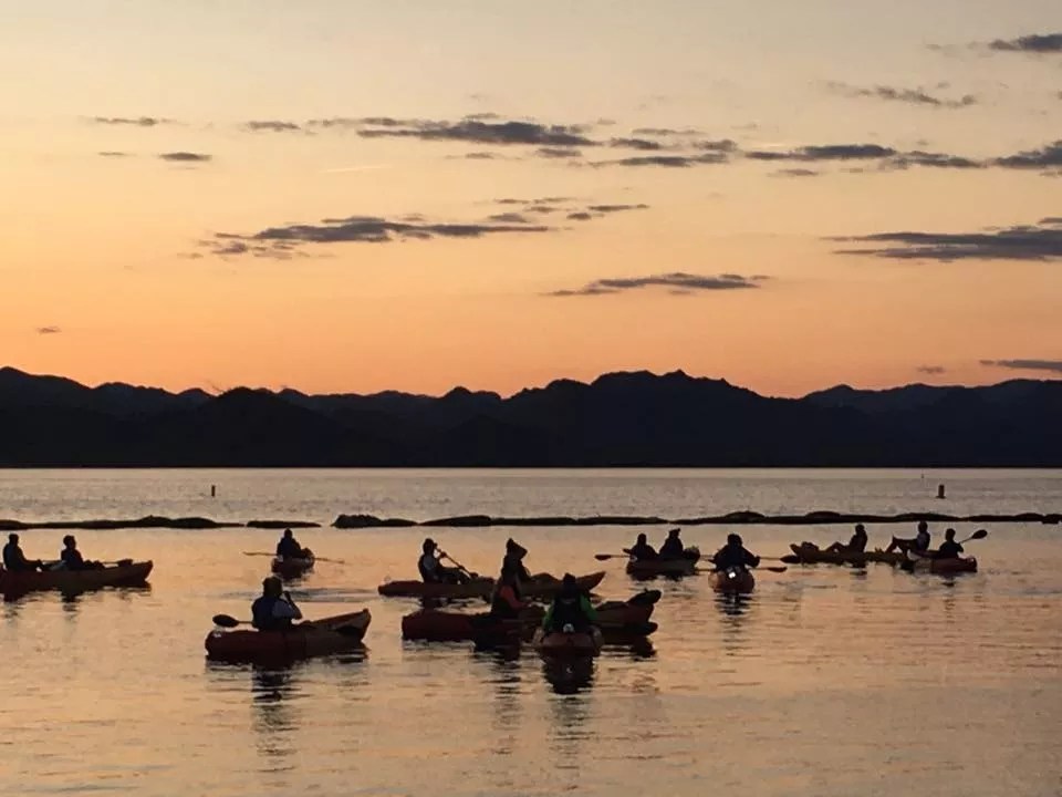 Been waiting for a chance to rock that fashionable headlamp in your utility closet? Strap on the headgear or grab a flashlight and take the Full Moon Kayak Tour. Attendees will paddle illuminated kayaks from the starting point at Go Paddle AZ, 8708 West Harbor Boulevard in Peoria, to Honeymoon Cove. The scenic cruise lands on a quiet shore for marshmallows and a campfire before heading back to the marina for live music and mingling.