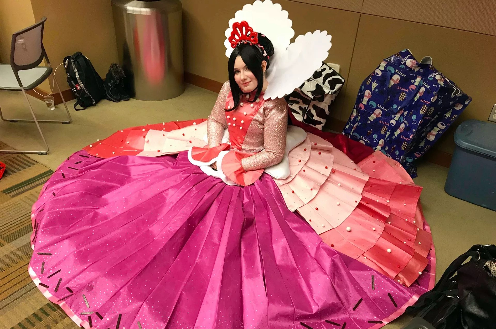 A lot of time and effort went into Brianna Williams’ cosplay of Vanellope von Schweetz’s princess dress from Wreck-It Ralph. Almost half a year of it, in fact.