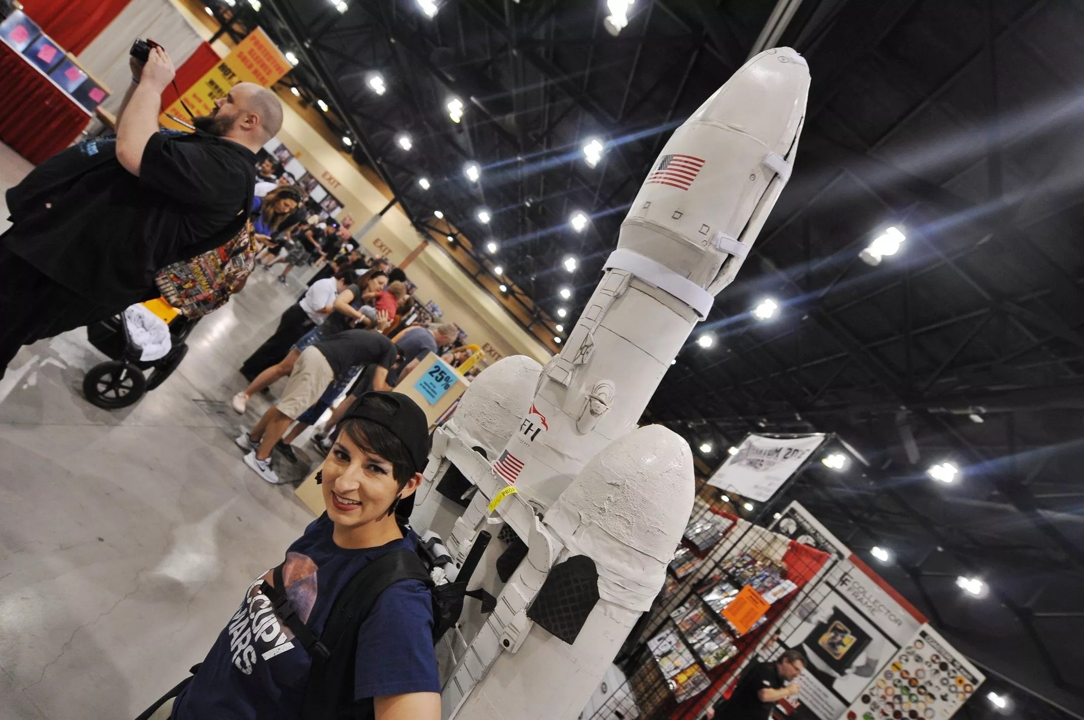 Back in February, Arizonans were astounded by the sight of one of Space-X’s Falcon Heavy rockets streaking through the night skies. Attendees of Phoenix Comic Fest had a similar reaction when they spotted the impressive looking version of the now-infamous famous rocket strapped to the back of local cosplayer MeliFromTheMoon.