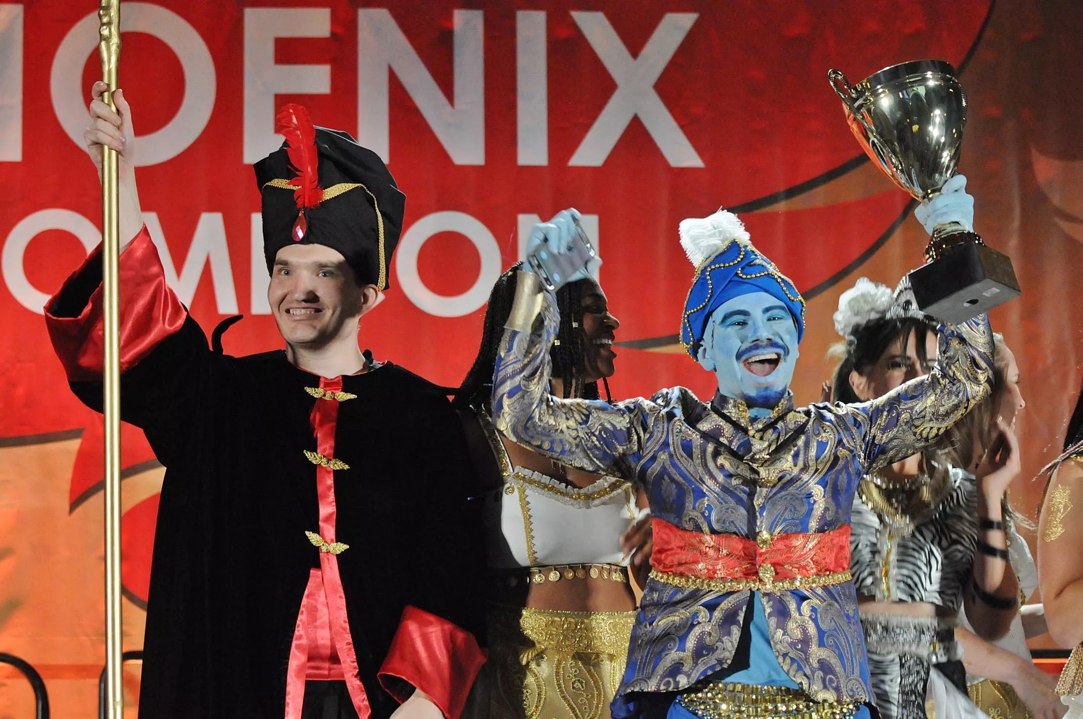 Cosplayers celebrate winning the “Best in Show” award at Phoenix Comicon’s Masquerade this year.