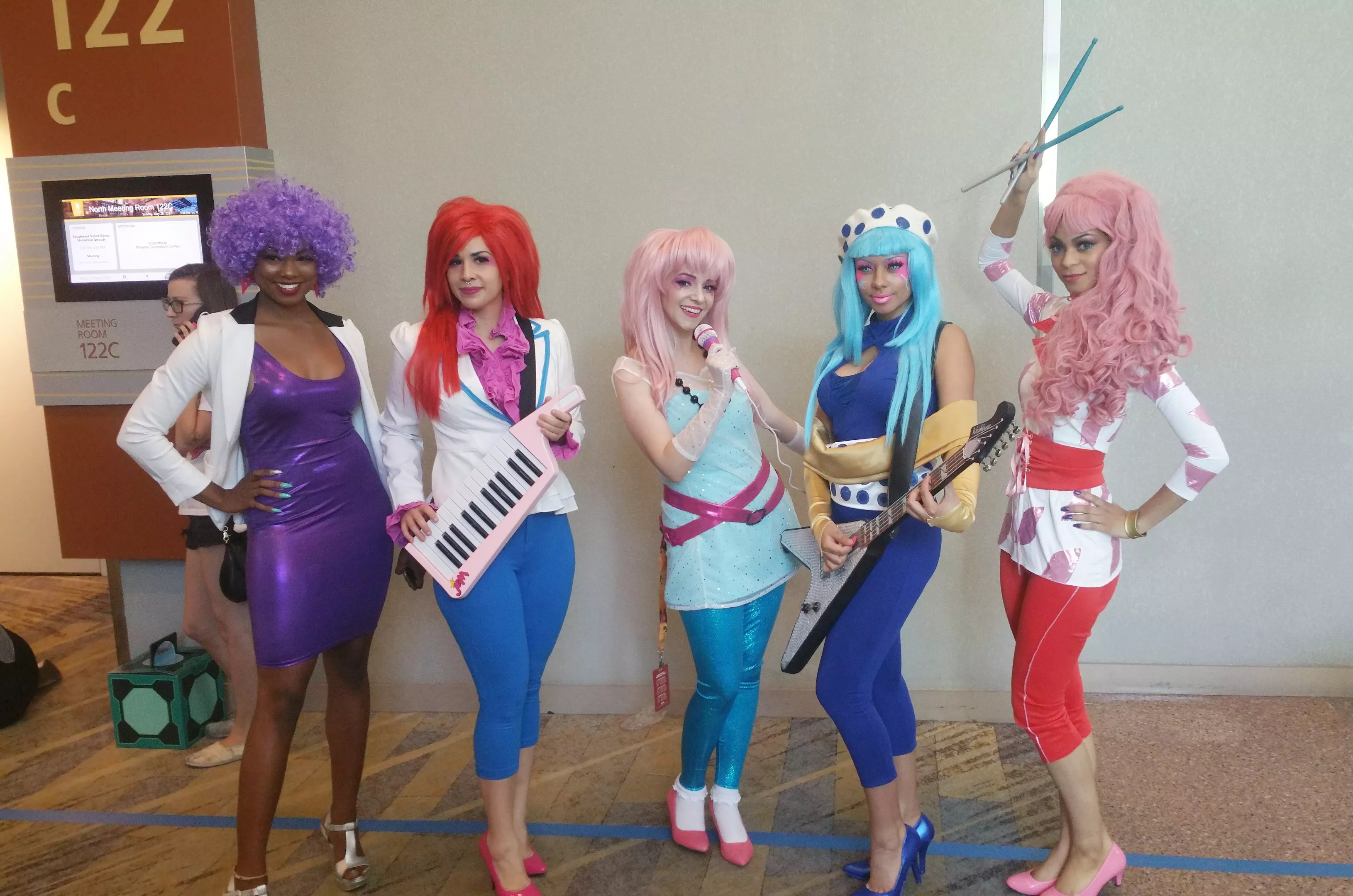 Any child of the ’80s worth his or her weight in Rubik’s cubes and Garbage Pail Kids cards would enjoy this group cosplay depicting the gals from the cartoon Jem and the Holograms we spotted at Phoenix Comicon 2017. It’s pretty faithful to its source material, right down the brightly colored attire and period-specific instruments, like that bodacious keytar.
