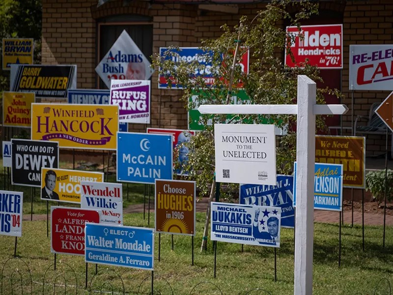 Scottsdale Museum of Contemporary Art is presenting an outdoor installation of political signs referencing losing candidates at a private residence located at 2506 North 13th Street. Created by artist Nina Katchadourian, the work will be on view through Thursday, December 3. Obviously, viewers should avoid disturbing the signs or the residents whose yard contains this installation.