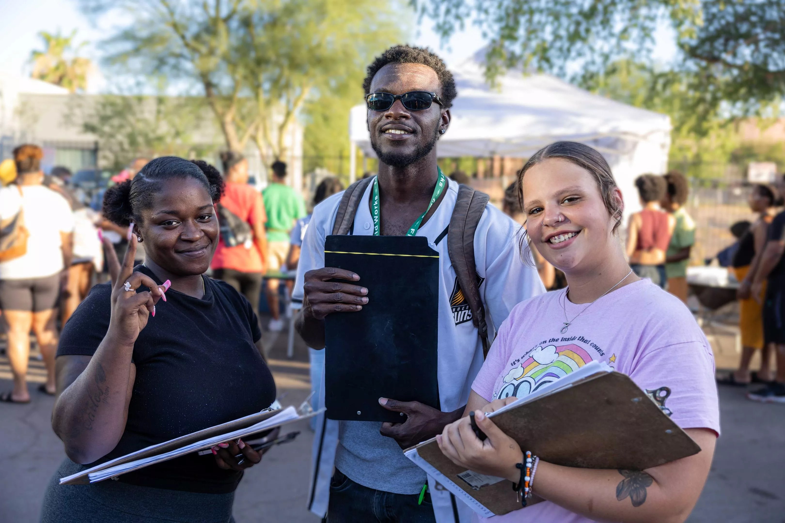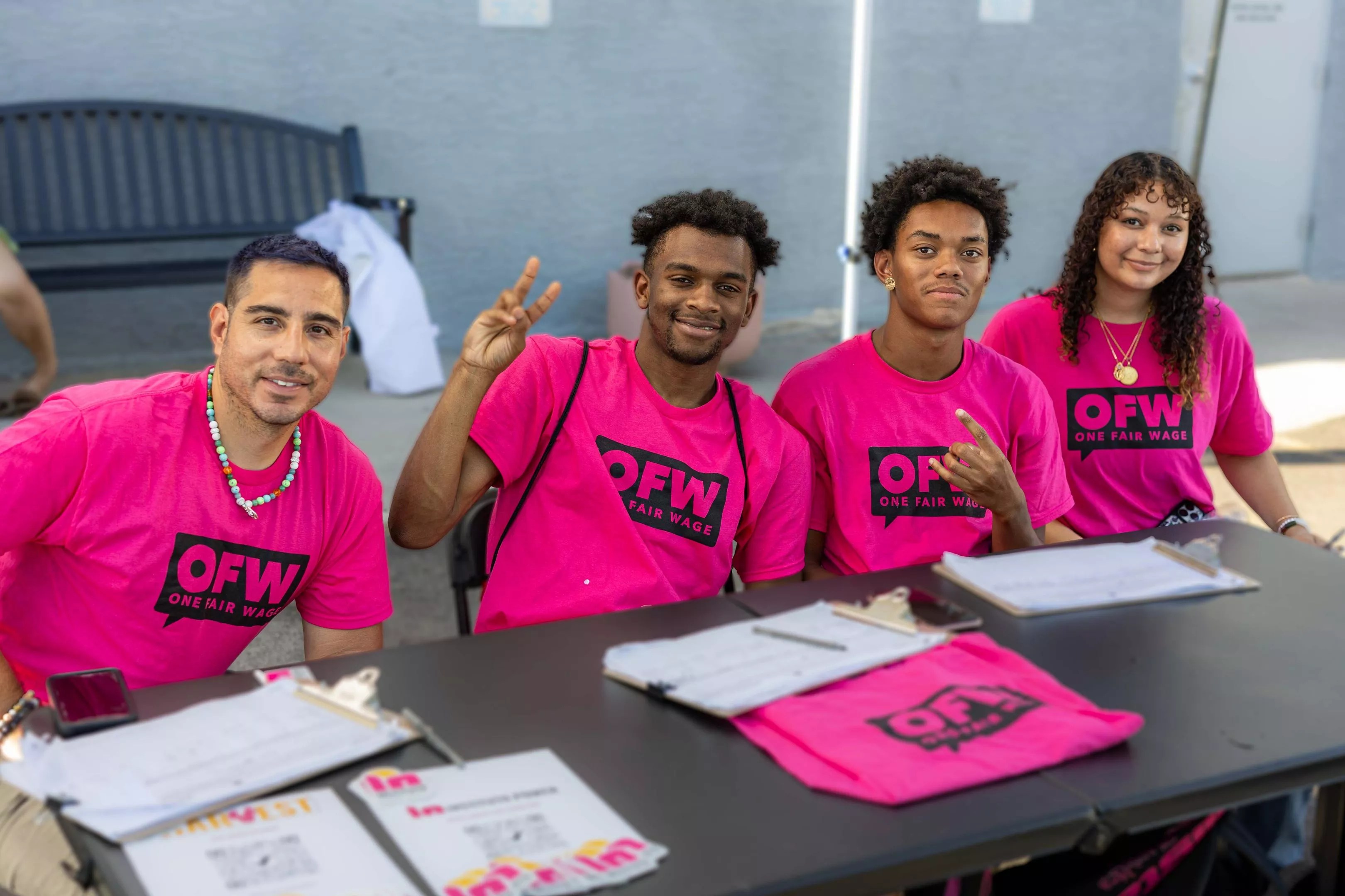 Volunteers with One Fair Wage shared info at the Juneteenth celebration.