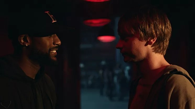Bodied – For the first hour, I understand the rapturous feedback – standing ovations and everything! – that Bodied won when it played the Toronto and Fantastic Fest film festivals a year ago. Right from the jump, we’re treated to a hilarious depiction of battle-rap culture that’s both intensely verbose and hysterically absurd. We first see our protagonist, grad student Adam Merkin (American Vandal’s Calum Worthy), at a grimy rap battle, trying – and failing – to teach his pedantic girlfriend (Rory Uphold) how to overlook the misogyny, violence, and homophobia these rappers spew and appreciate it for the wordy, witty spectacle it is. Since he’s writing a thesis paper on the use of the N-word in battle rap, he goes to a master, Behn Grymm (Jackie Long), for research. For some reason, Grymm ropes Merkin into an impromptu rap battle (Merkin’s opponent’s name: Billy Pistolz) and, after discovering how good he is at incisive wordplay, gets immediately hooked on the competitions. Lord only knew there was so much to make fun of in rap culture, which Bodied does with proudly redonkulous fervor. It’s such fun watching this profane silliness unfold that it pissed me off when Bodied took a sharp turn in the second half. While the movie does address white people’s thorny relationship with rap and cultural appropriation, it demonstrates how delicate satirizing that can be when it gets kind of serious near the end – a long, long end – and suggests that being the best at battle rap can also mean being the worst. Rated R. (Craig D. Lindsey)