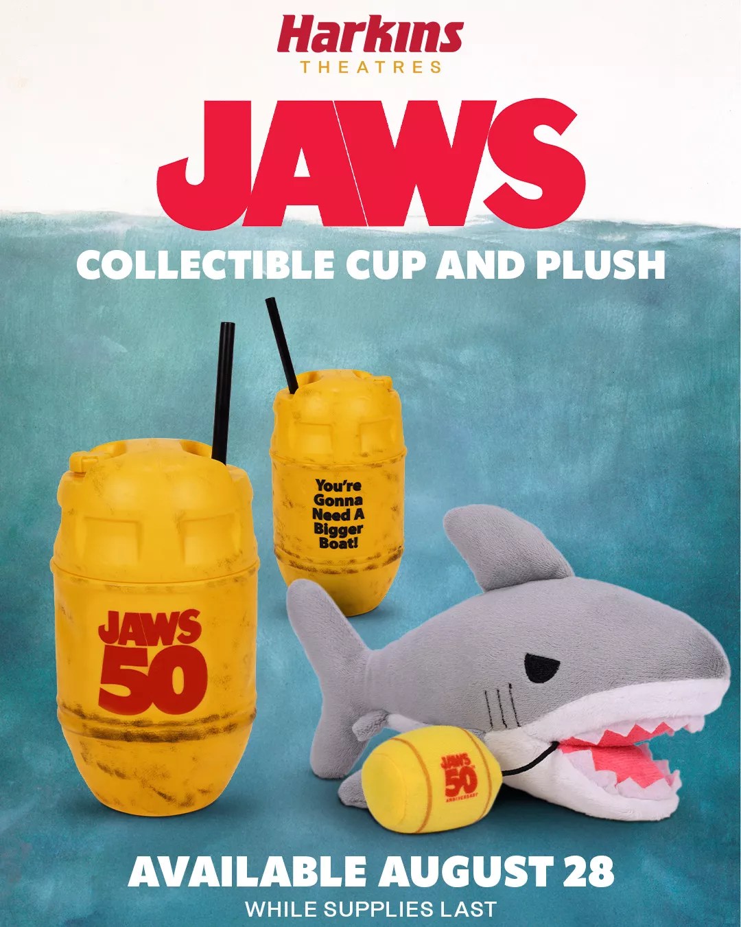 You can get a souvenir cup and a stuffed shark at Harkins Theatres.