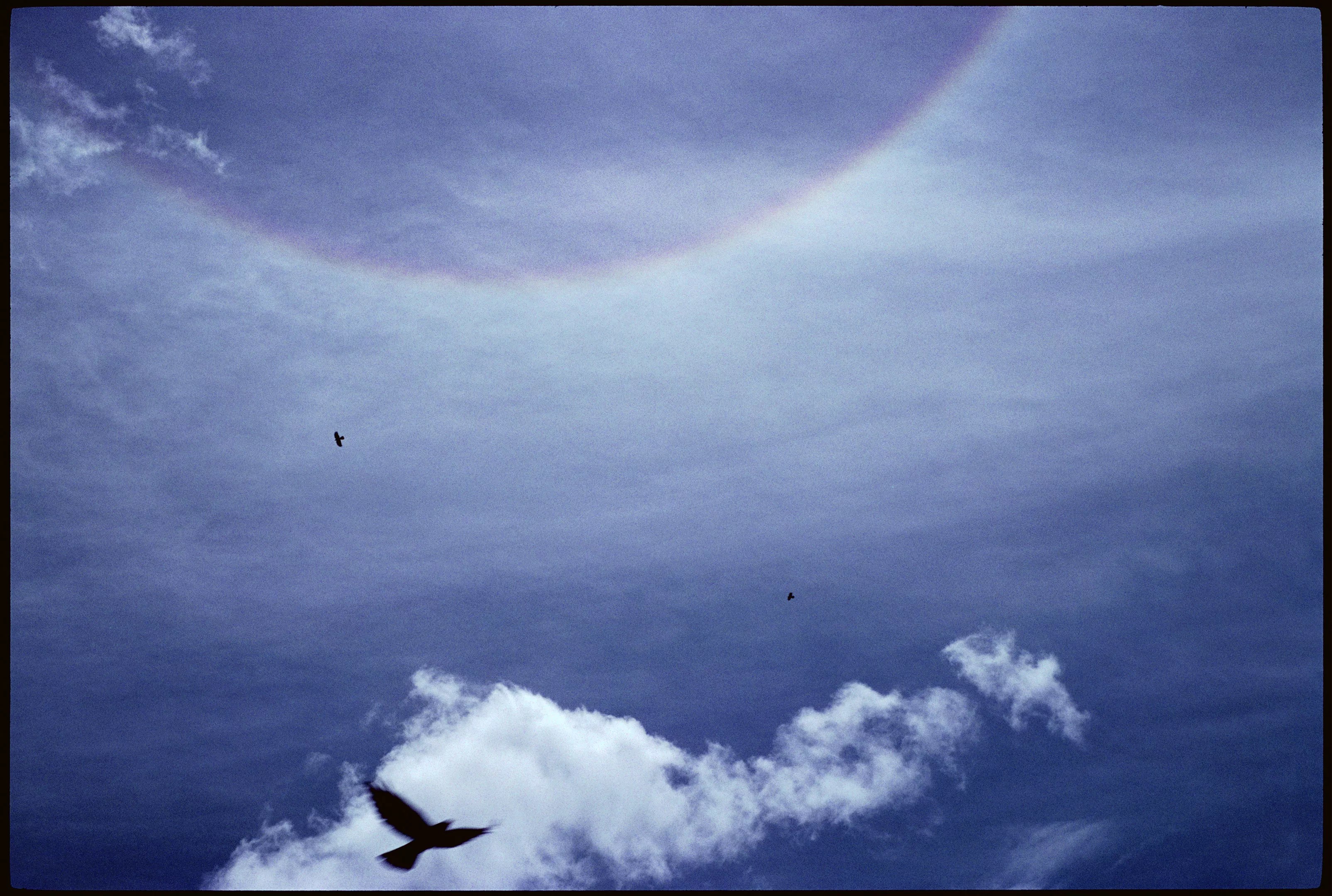 Crows and halo above Rongbuk Monastery near Mt. Everest base camp. May 2007.