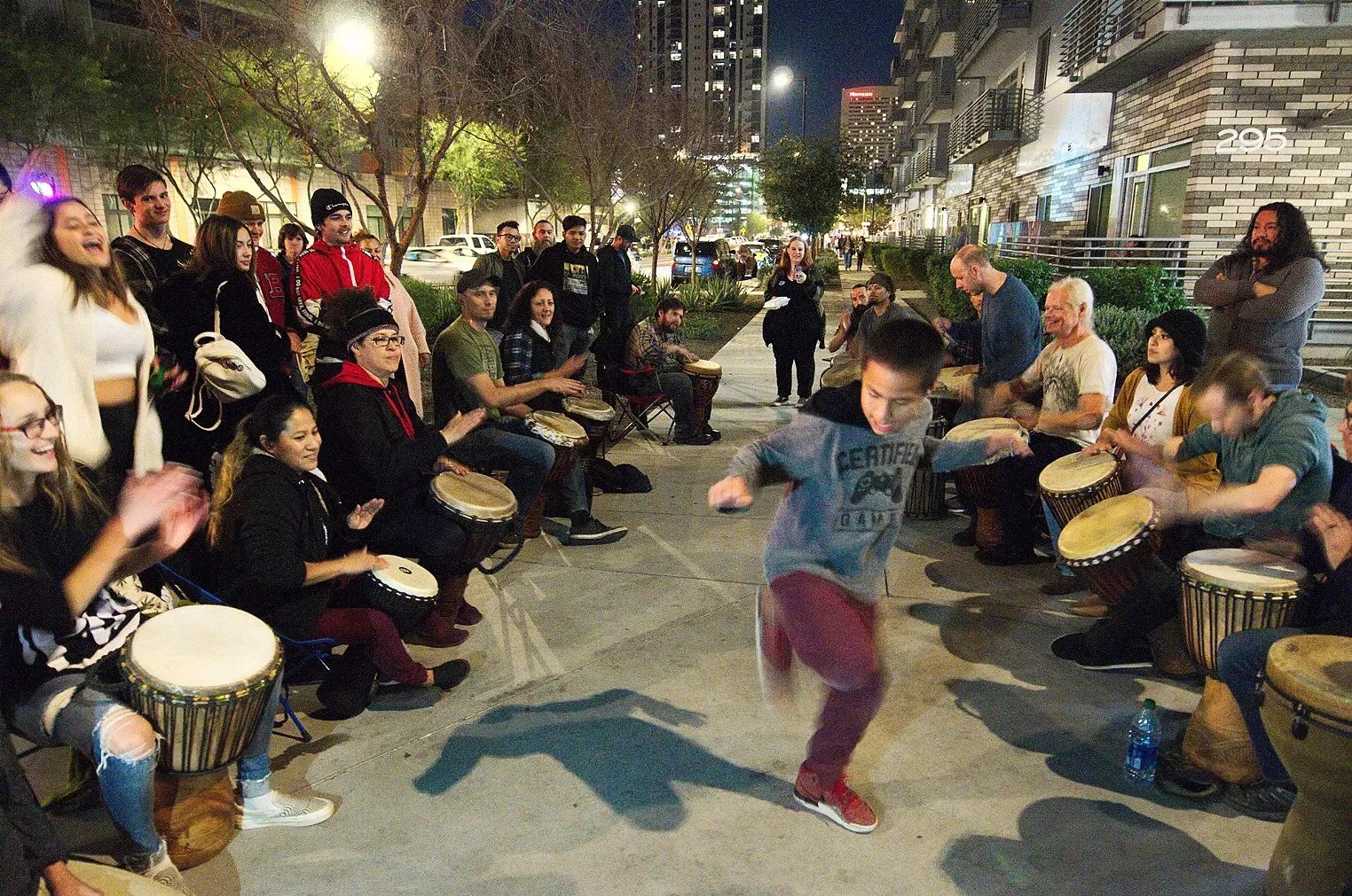 As we note in our monthly event guide, thousands of people flock to the Roosevelt Row Arts District from 6 to 10 p.m. each First Friday “looking to shop, eat and drink, see art and people-watch” among its participating bars, businesses and food trucks. A large portion of those attending the event are under 18, as the event is a popular hangout spot for teens.