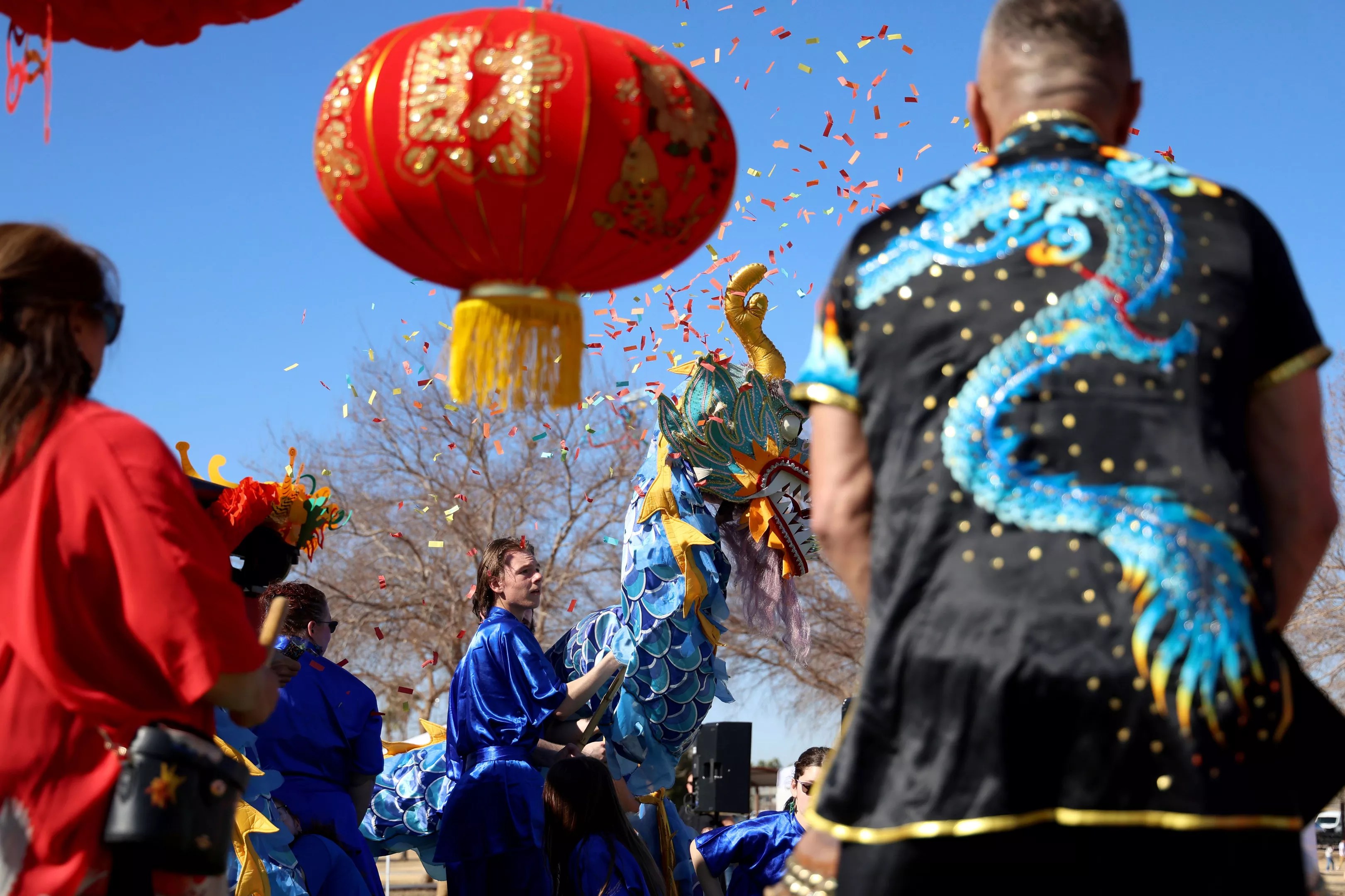 Dylan Doucet with ActivStars Athletics holds the dragon during a dragon dance at the Phoenix Chinese Week Lunar New Year Festival on Feb. 2.