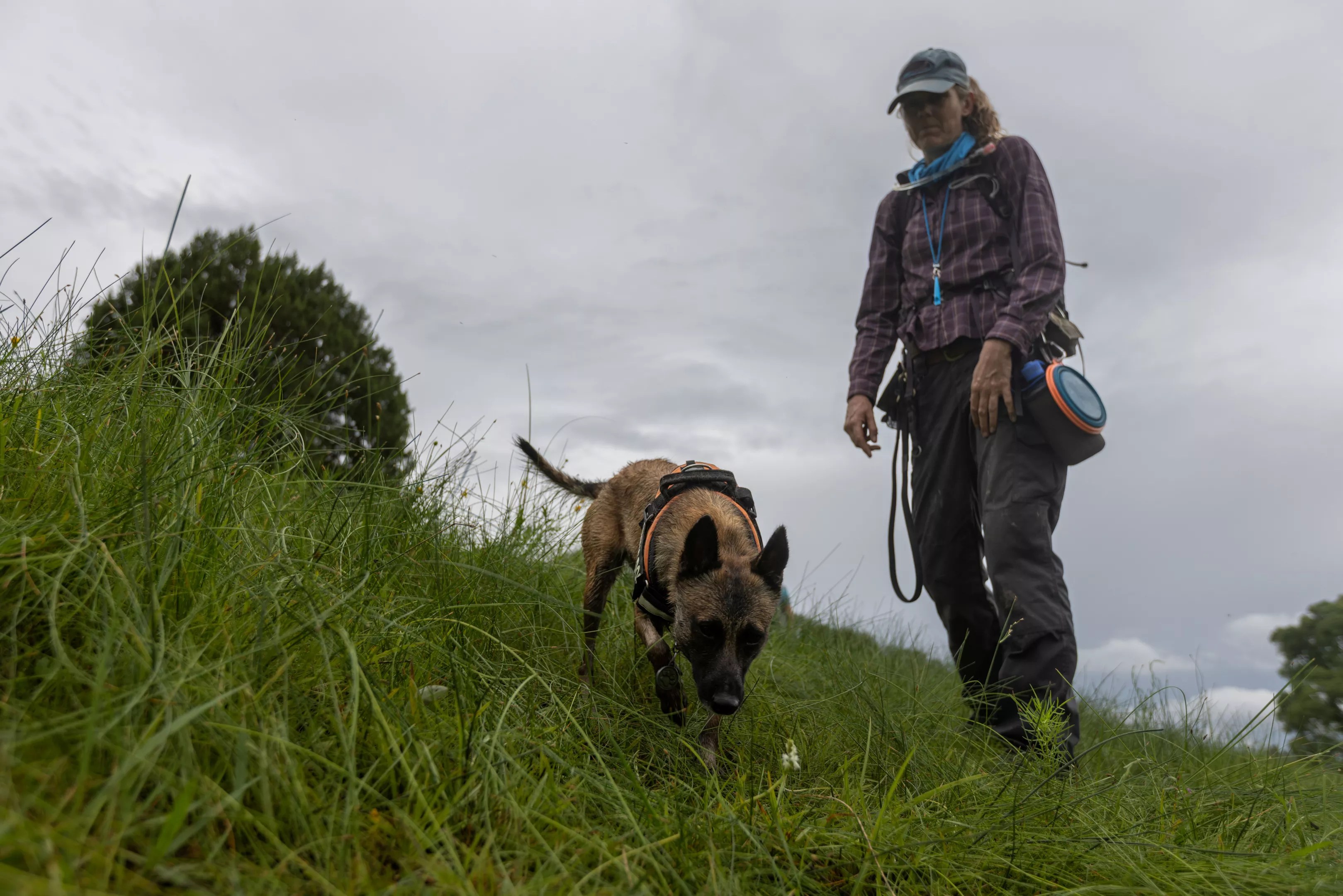 These orchids can be challenging to find in the wild. They typically grow between 1 and 1.5 feet tall at full maturity, and the flowers are delicate and small. Adding to the difficulty in reproducing, they don’t flower every year. To help with their search efforts, the DBG worked with Lauralea Oliver, owner of K9inSCENTive, a California-based ecological scent detection training service.