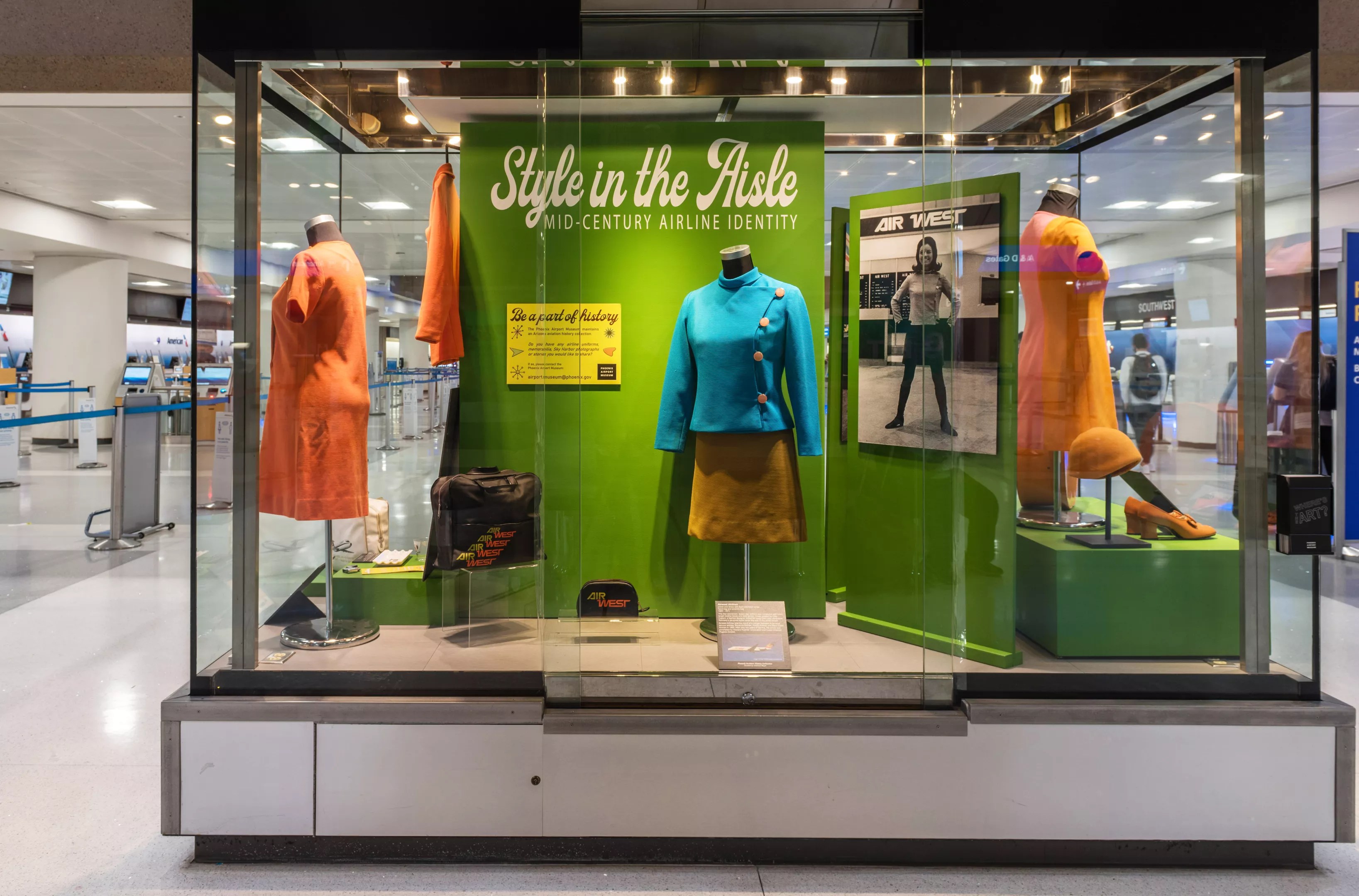 Seeing today’s flight attendants dressed in khaki shorts and polo shirts, it’s easy to forget that crew members working the aisles once wore far more elaborate fare, from fancy dresses to go-go boots. Take a trip down memory lane with this exhibit highlighting mid-century airline identity, which you’ll find inside a pair of display cases.