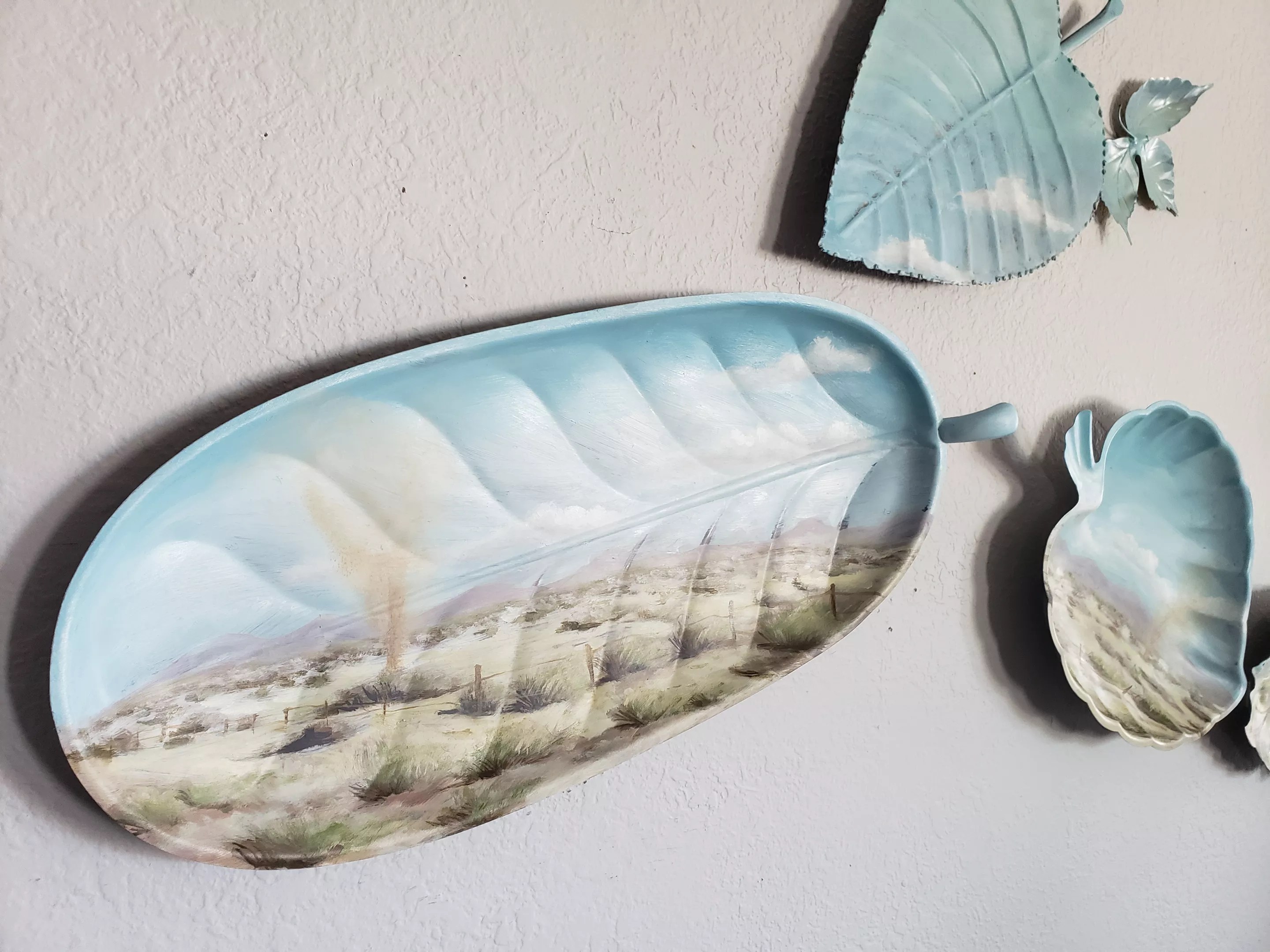 Look for one of Laura Spalding Best’s installations featuring desert landscapes painted on leaf-shaped candy dishes and trays on the east end of the terminal. Like her larger body of work, the installation puts a creative twist on everyday landmarks in the urban desert.