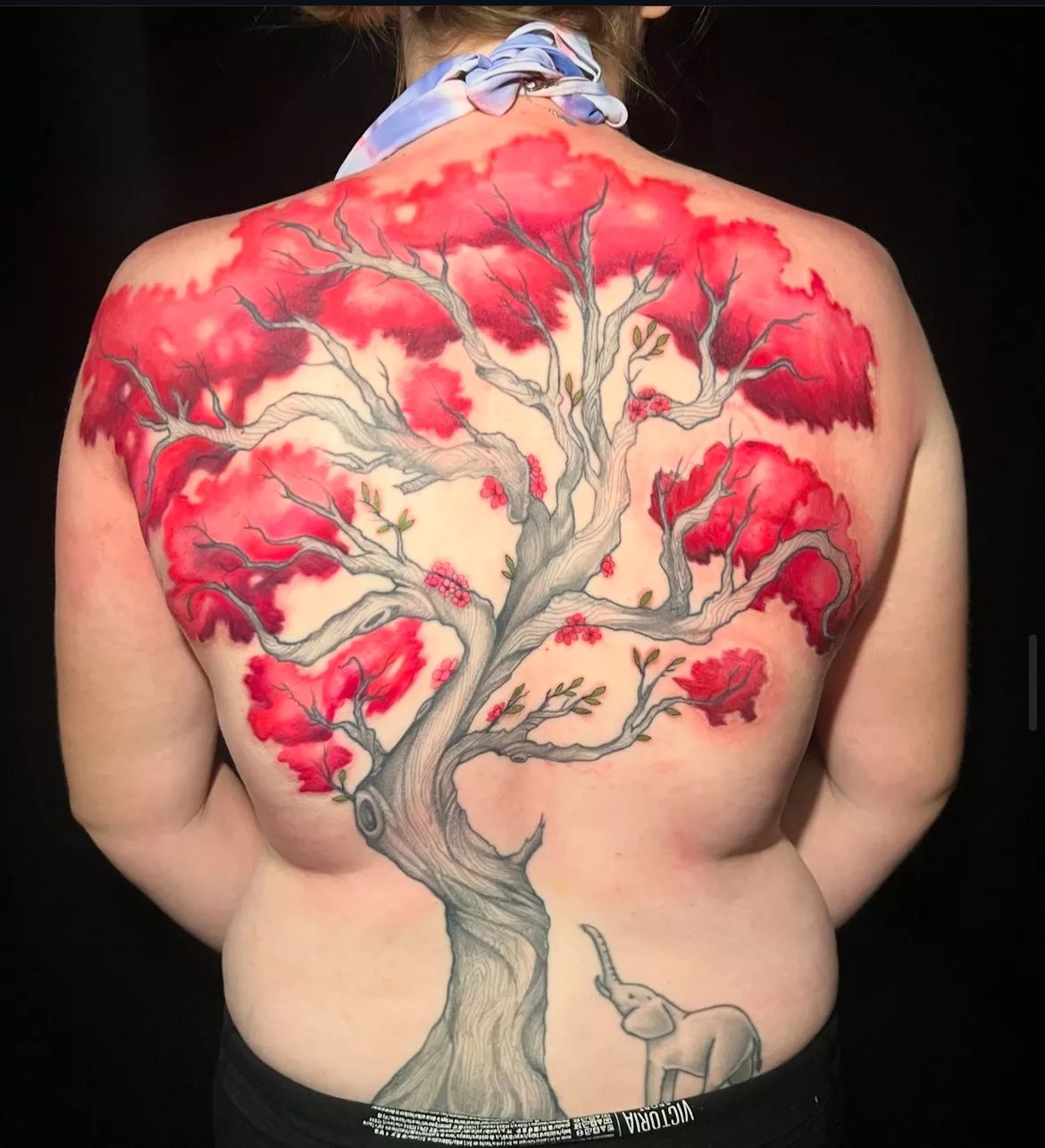 Although she accepts a diverse range of requests, working on large-scale tattoos is her true passion. This allows time to connect more with clients to make each custom design intricate and personal. Researching to understand the subject matter and planning the design’s composition is also a main component in customizing each design.