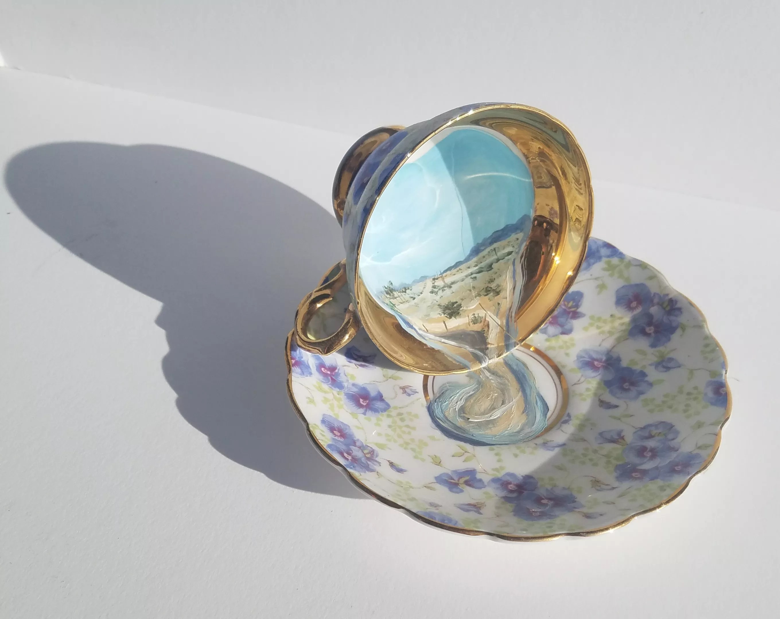 Phoenix artist Laura Spalding Best doesn’t spend a lot of time looking into mirrors. She’s more concerned with desert landscapes, and our relationship to water. But she does use mirrors as canvas in her art practice sometimes. Head to Practical Art, 5070 North Central Avenue, and you’ll see dainty vintage hand mirrors, and other objects she’s painted with intriguing blends of natural and manmade objects, including the utility poles that form a common thread throughout her work. It’s her way of playing with assumptions about paradise, and mirage.