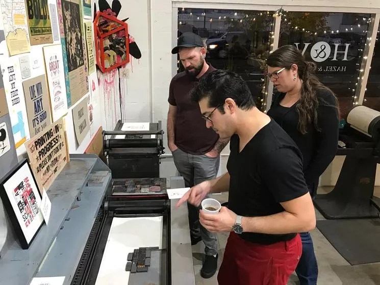 Surround yourself with fellow word nerds at Hazel & Violet, 1301 Grand Avenue. That’s where Nancy Hill holds her letterpress printing workshops, where people learn to ink metal or wood type, then press it onto paper.