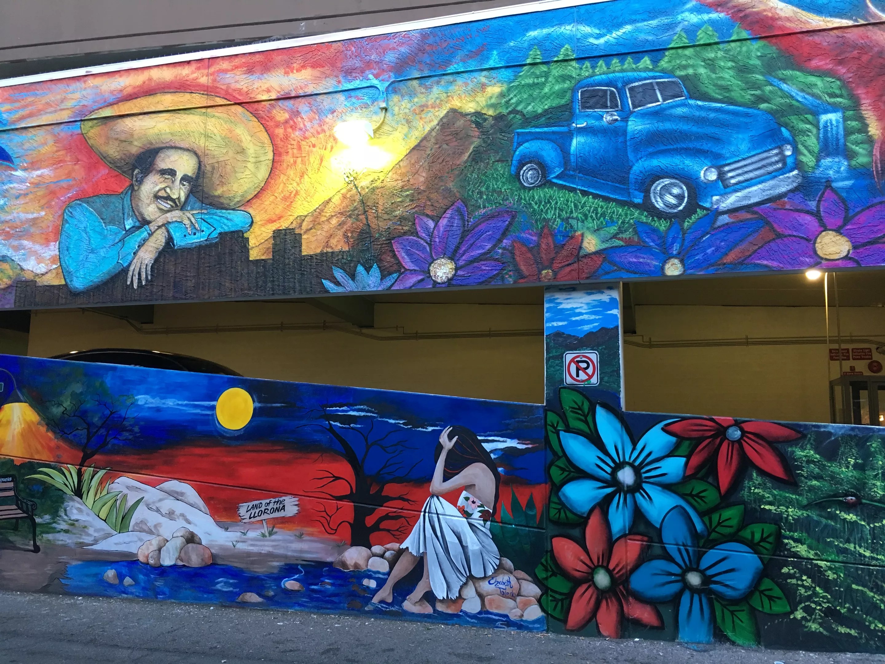 Part of a collaborative mural located in an alley behind the Latino Arts & Cultural Center.