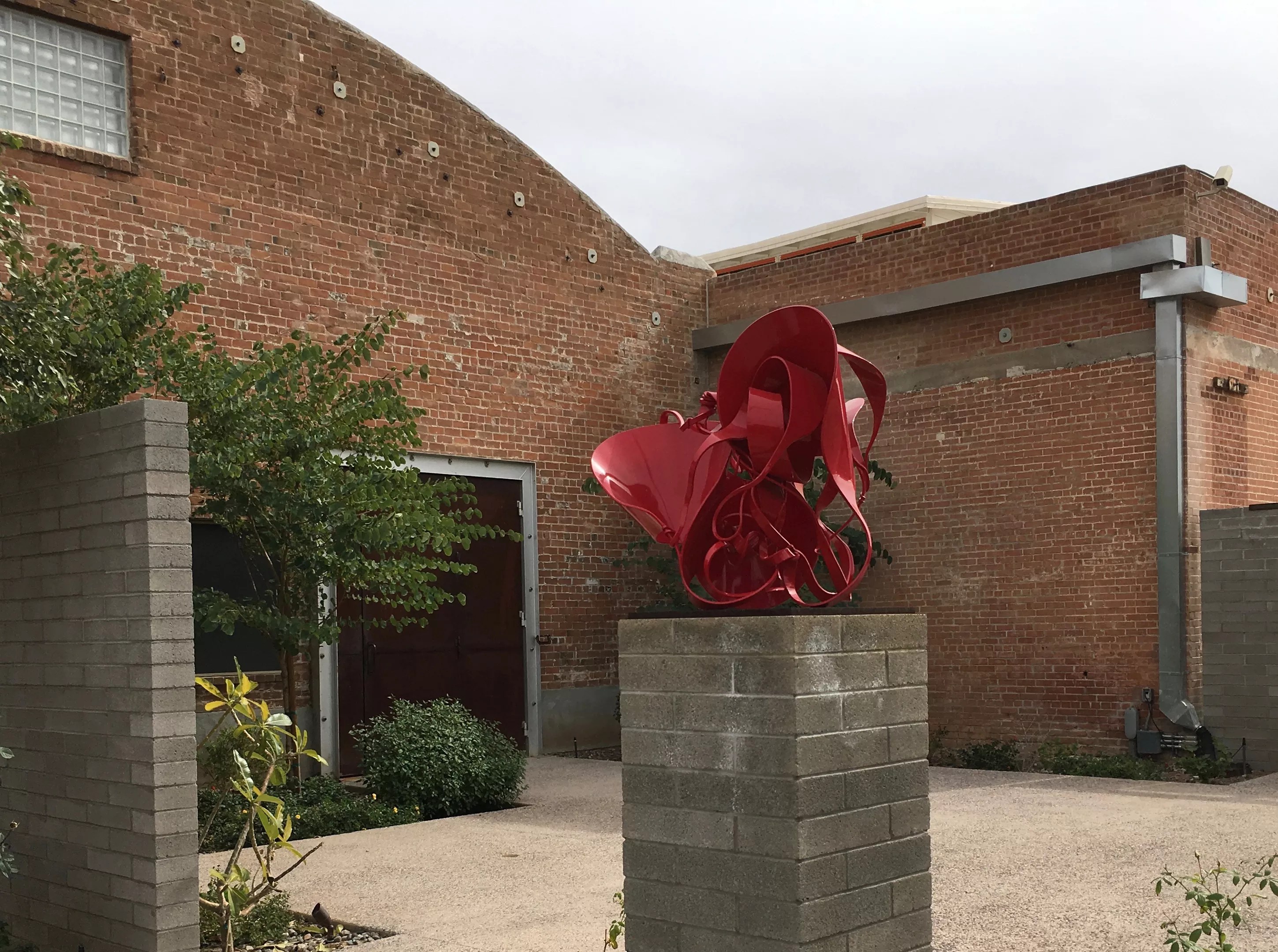 Pete Deise sculpture in a courtyard at Bentley Projects in the warehouse district.