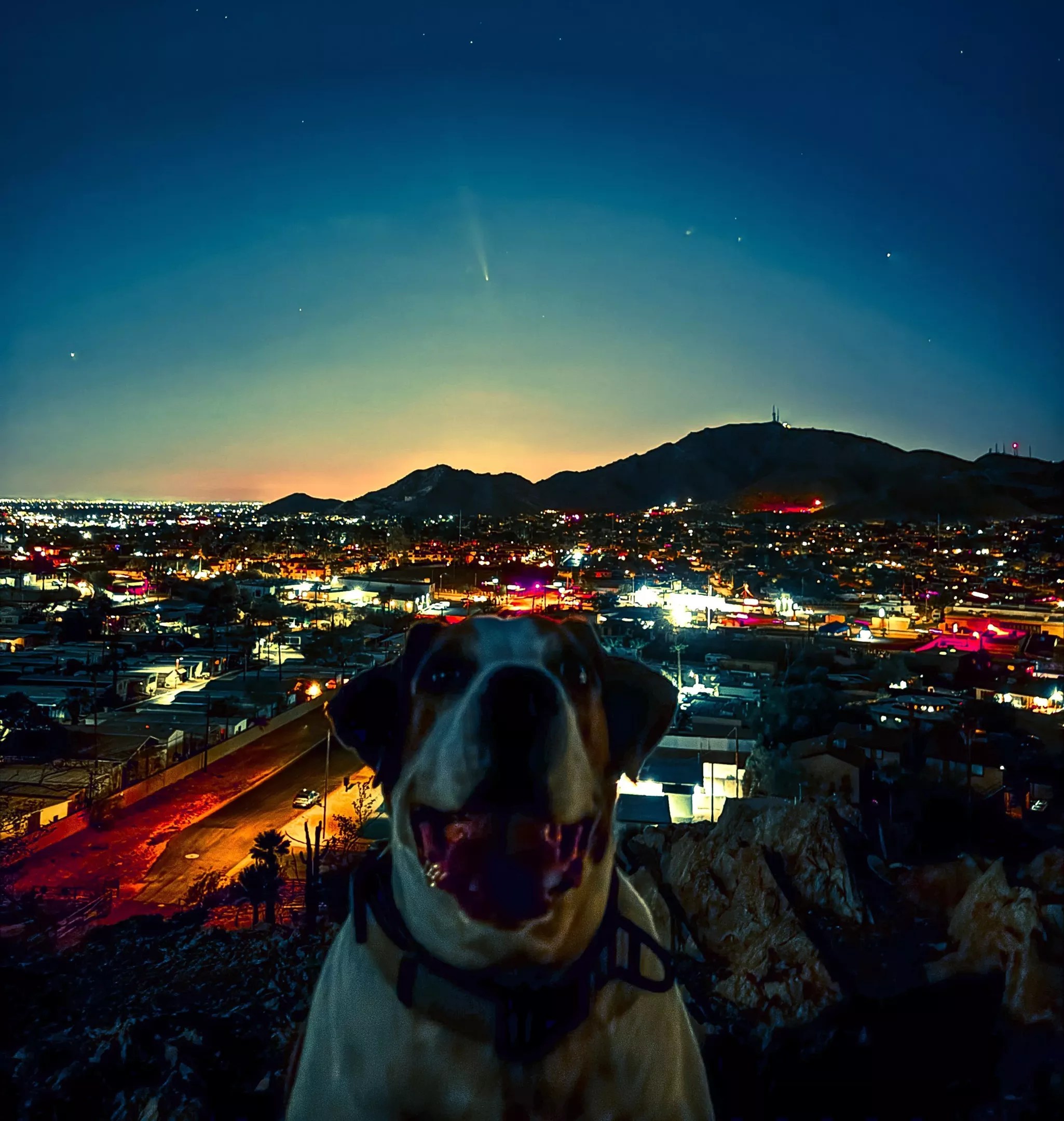 Sunnyslope resident Oliver Lebot captured this photo of Comet C/2023 A3 along with his dog, Vinnie, on North Mountain.