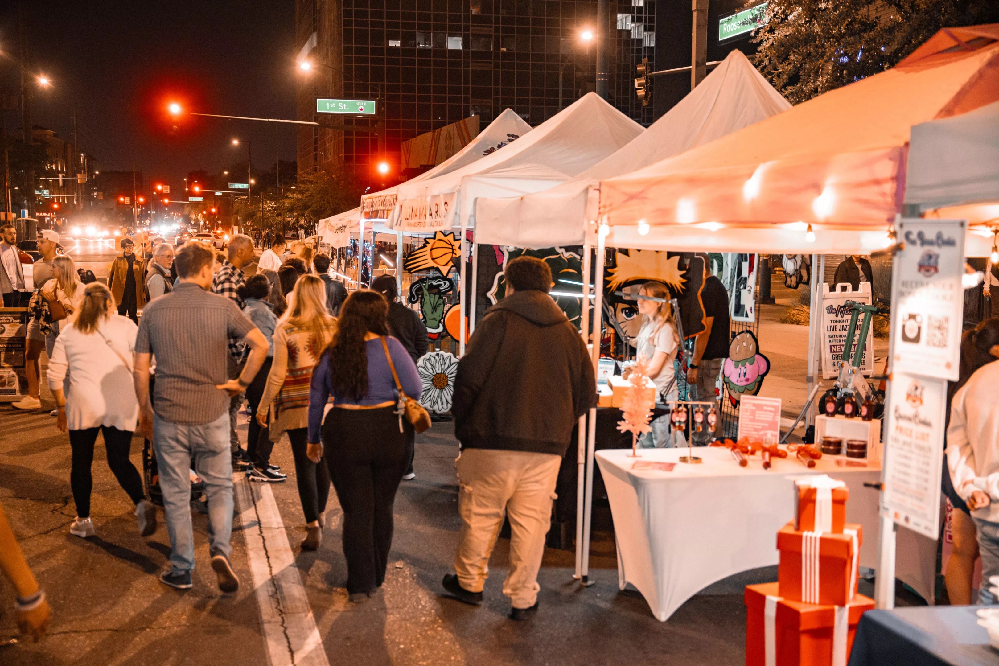 Checking out the goods at First Friday.