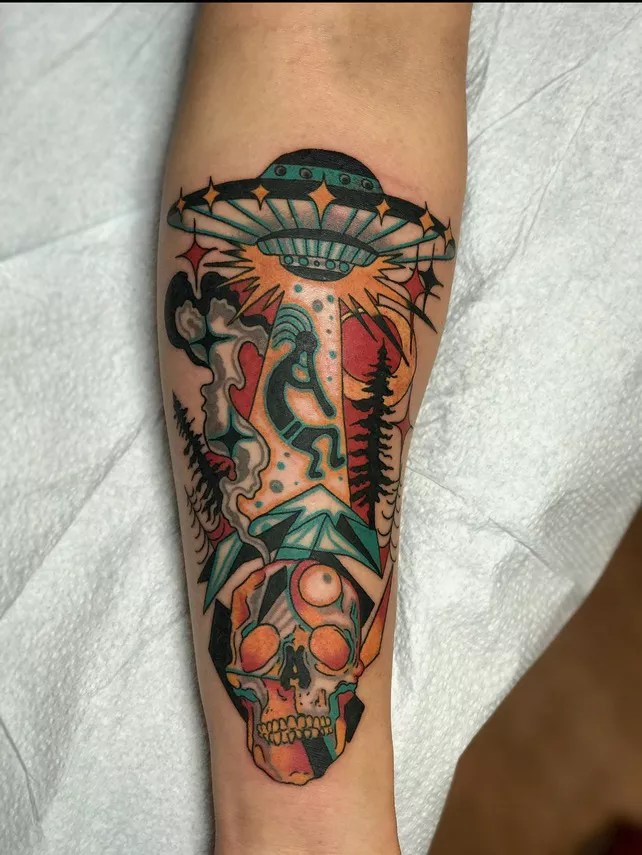 He fell into the tattoo industry by happy accident, simply being at the right place at the right time. Originally from Colorado, he came to Arizona to attend art school. After becoming a regular client at a local tattoo shop, they offered him an apprenticeship based on his drawing skills.