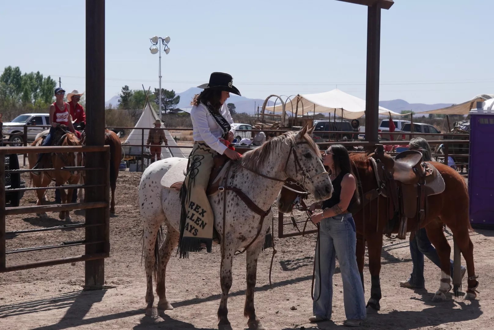 Rodeo princess Adelaide Werkheiser prepares to ride into the ring at the Willcox West Fest Ranch Rodeo & Chuck Wagon Cook-Off in Willcox.
