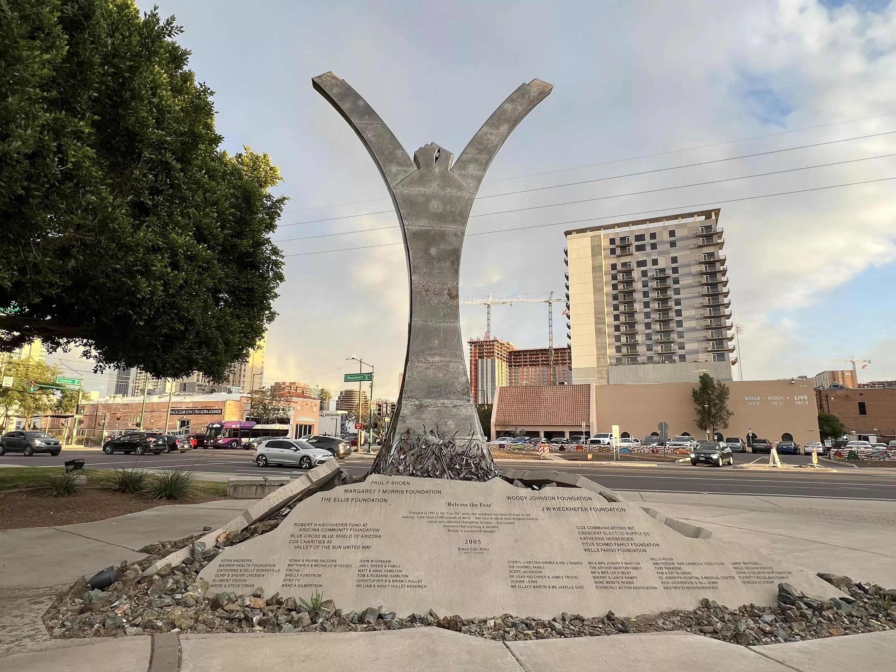 “Release the Fear,” an anti-gun violence sculpture by Robert John Miley, has been on Roosevelt Row since 2005.