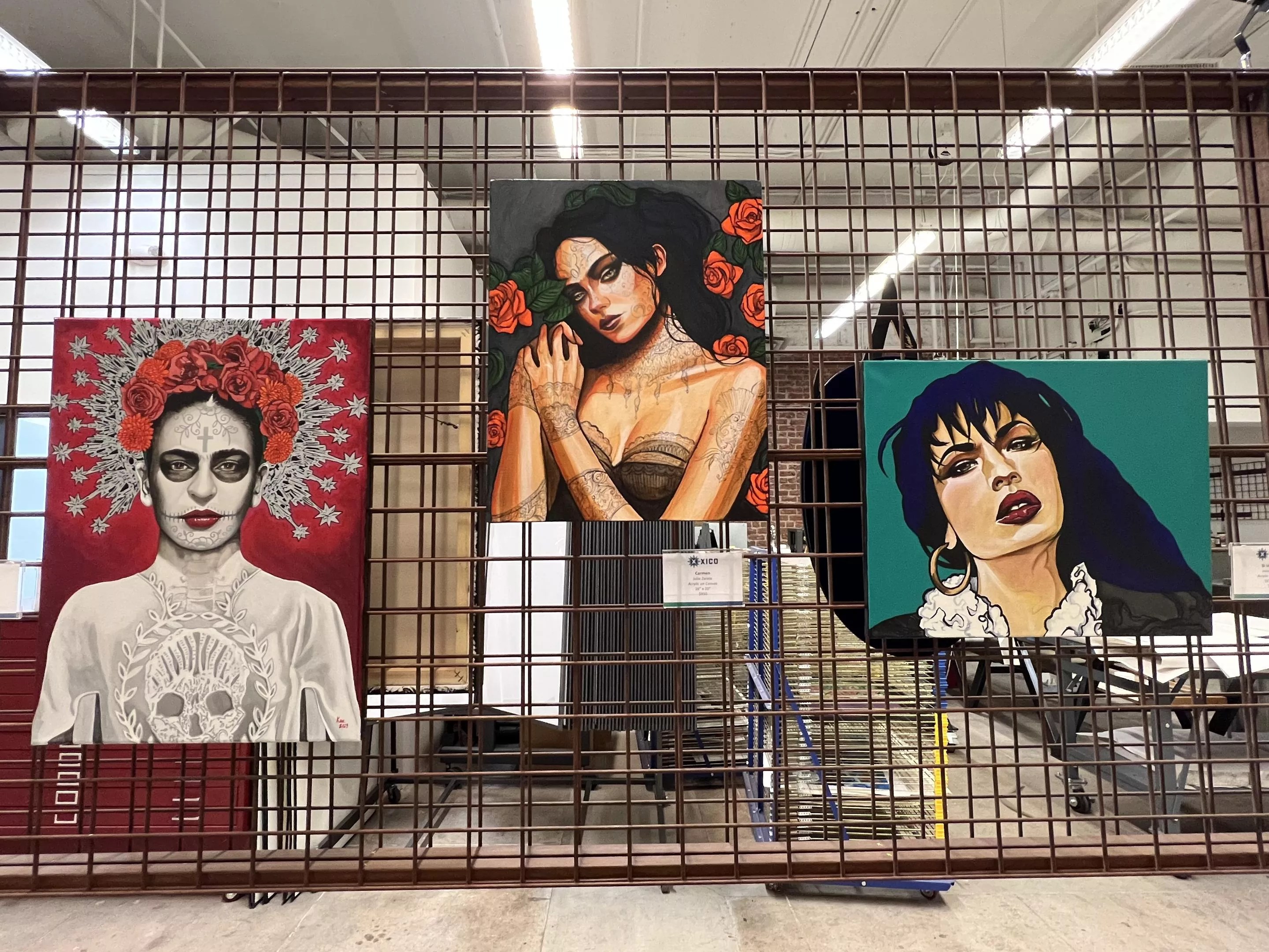 Works by Maria Kane, left, and Julie Zarate, center and right, at Xico Inc.