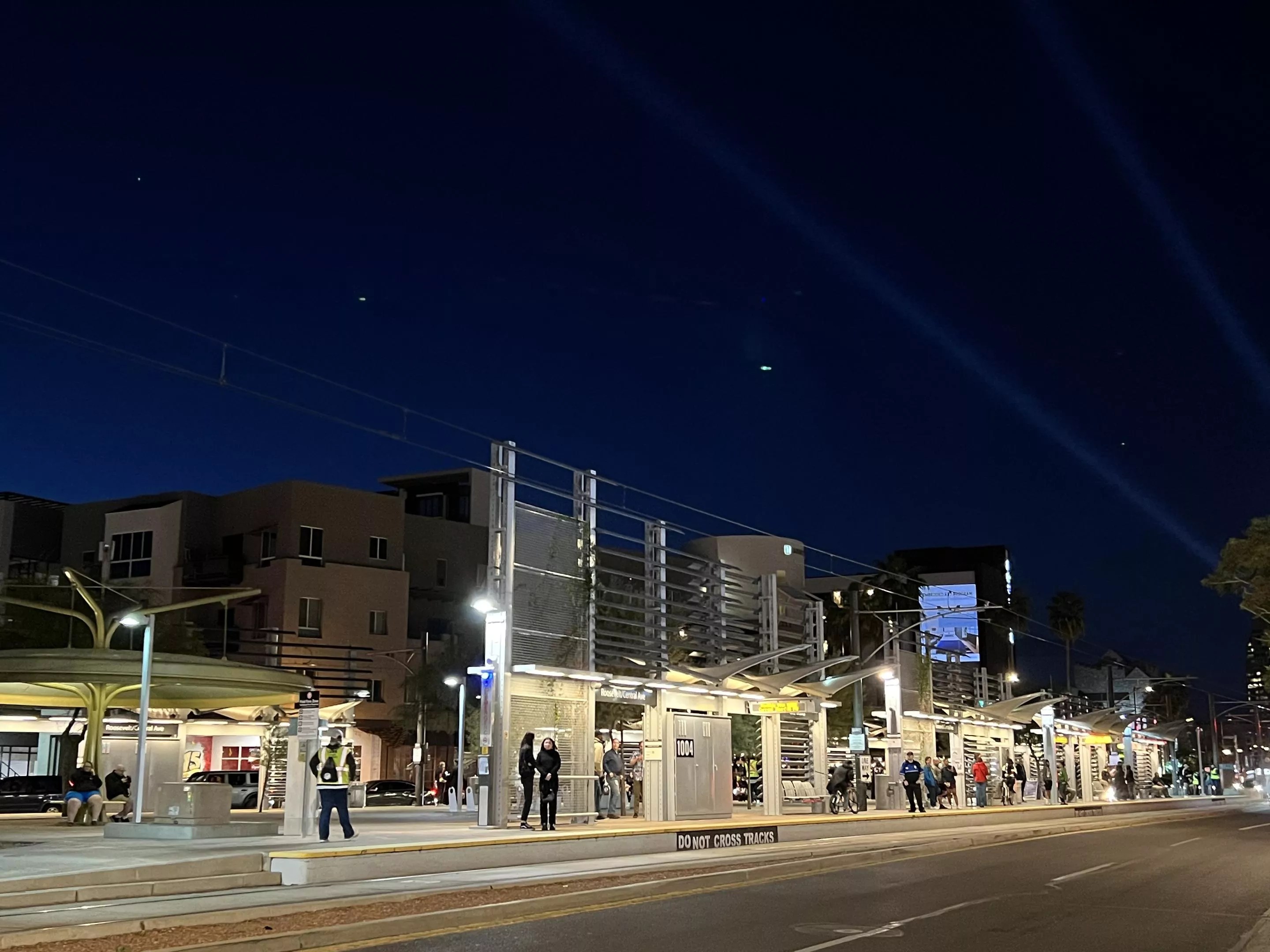 The light rail stop at Central Avenue and Roosevelt Street was busy all night with First Friday walkers and March Madness Music Festival fans.