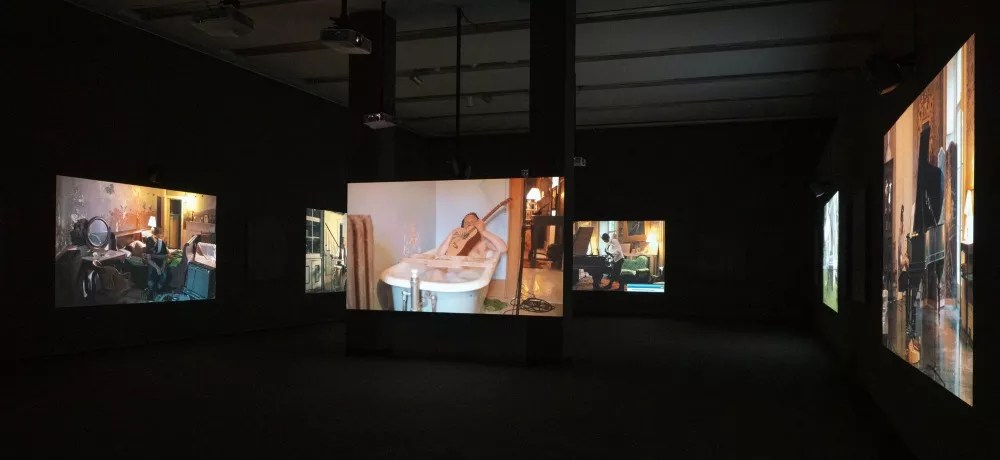 Kjartansson is far from the first video artist or filmmaker to experiment with multiple channels and screens. The silent filmmaker Abel Gance used a triptych screen to project the climax of his 1927 movie Napoleon, filming an elaborate finale that was meant to be played out across three different screens simultaneously. Ray and Charles Eames’ 1964 short film Think was designed to play out on 14 large screens and eight small ones, each of varying sizes and shapes. Andy Warhol, when he wasn’t busy shooting eight-hour films about the Empire State Building, played with the multiscreen format with 1966’s Chelsea Girls, in which two different reels are played in tandem on dual screens).
