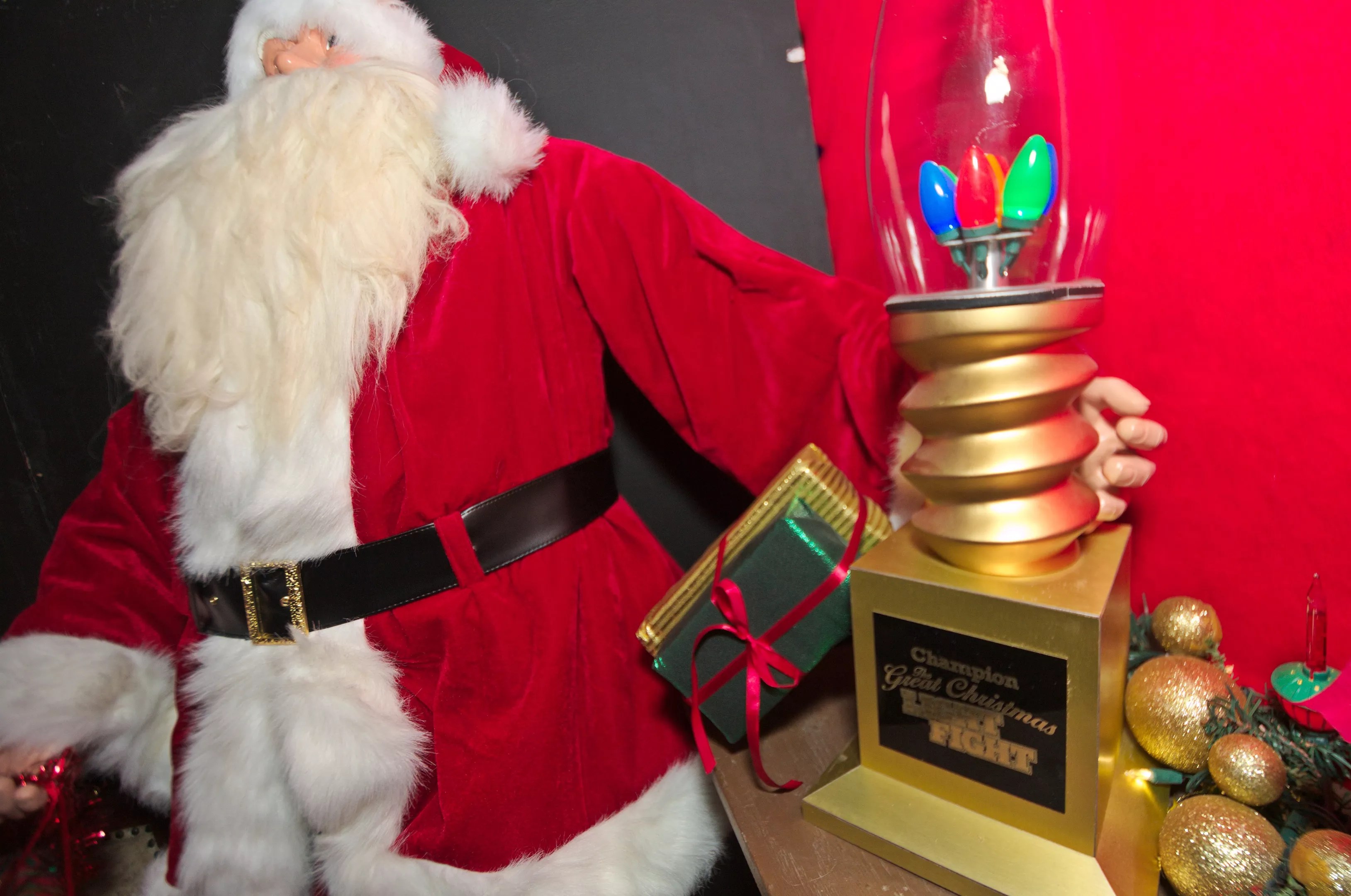 The Birkett’s Great Christmas Light Fight trophy on display at their Scottsdale home.