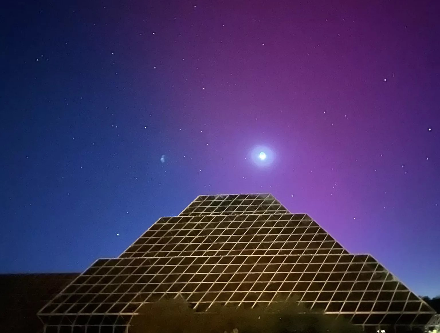 A photo of the northern lights over Biosphere 2 in Oracle.