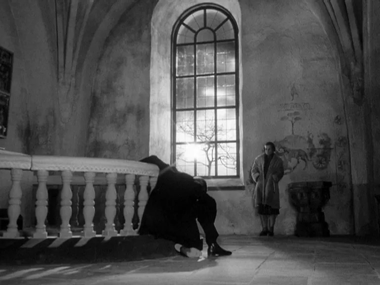 Featuring one of Bergman’s most complex protagonists, Winter Light tells the story of a priest who continues to go through the motions of his vocation while losing his faith in God. It’s a movie that lingers on the question of how God can stay silent and absent in the face of human suffering. Whether it’s characters fretting over the existence of atom bombs, the unrequited love one character feels for Björnstrand’s Pastor Tomas, suicide, or Tomas’s own memories of witnessing horrific war crimes during the Spanish Civil War, Winter Light casts a bleak and unsparing eye on all the psychic ills afflicting this small community.