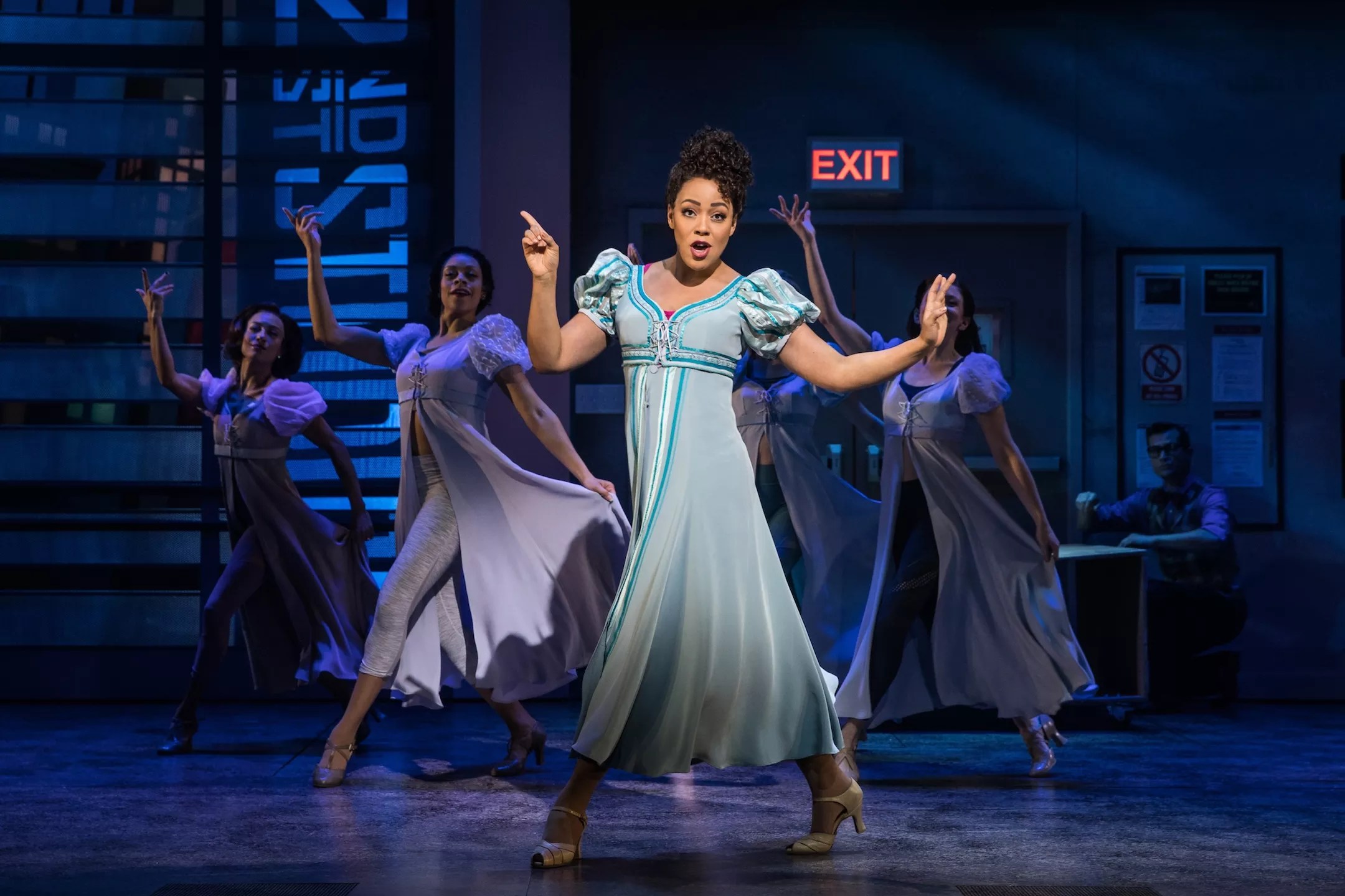 Eva Noblezada and the original Broadway cast of Hadestown.