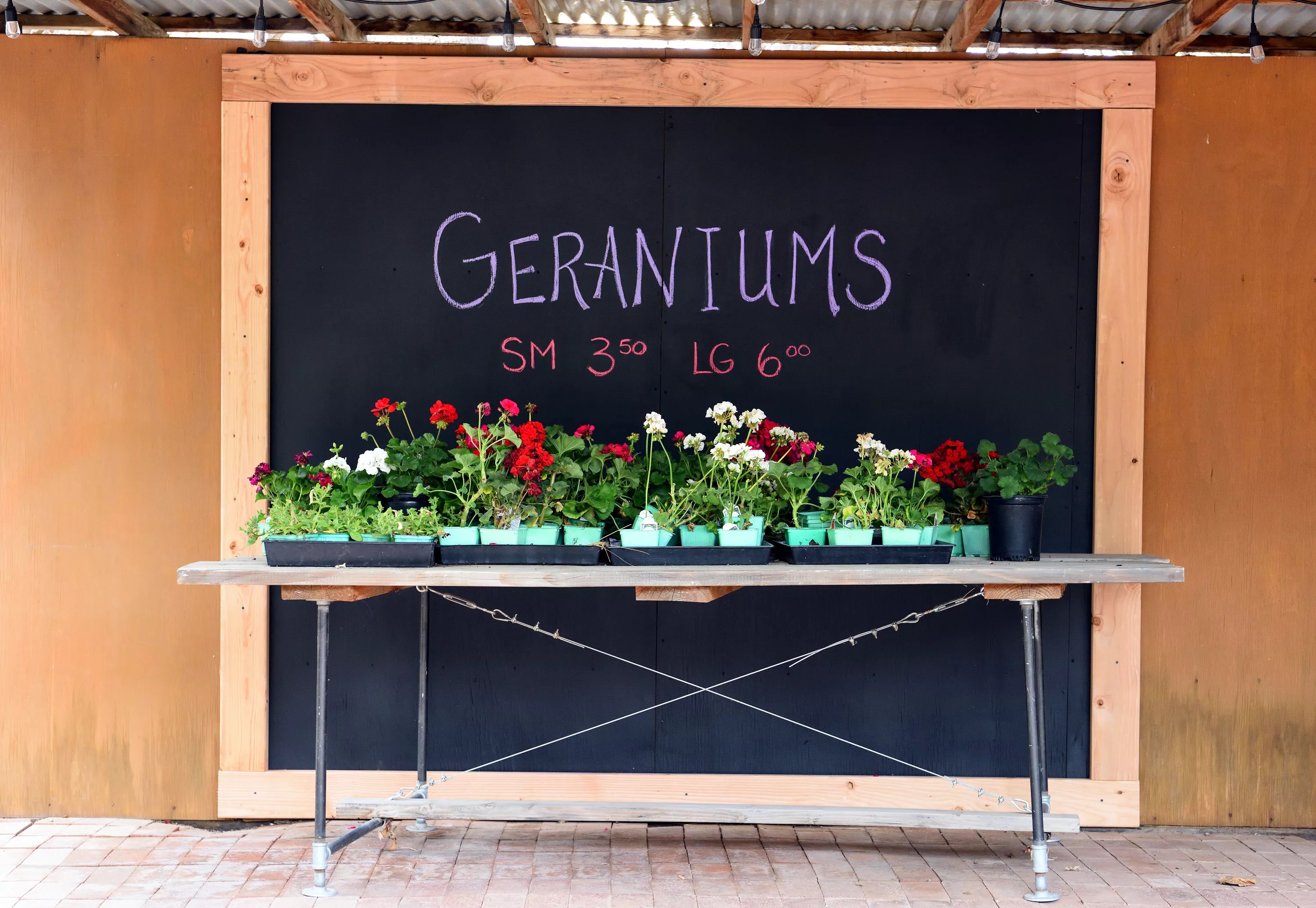Botanica at The Farm offers in-season plants and flowers, including geraniums, succulents, herbs, and air plants.