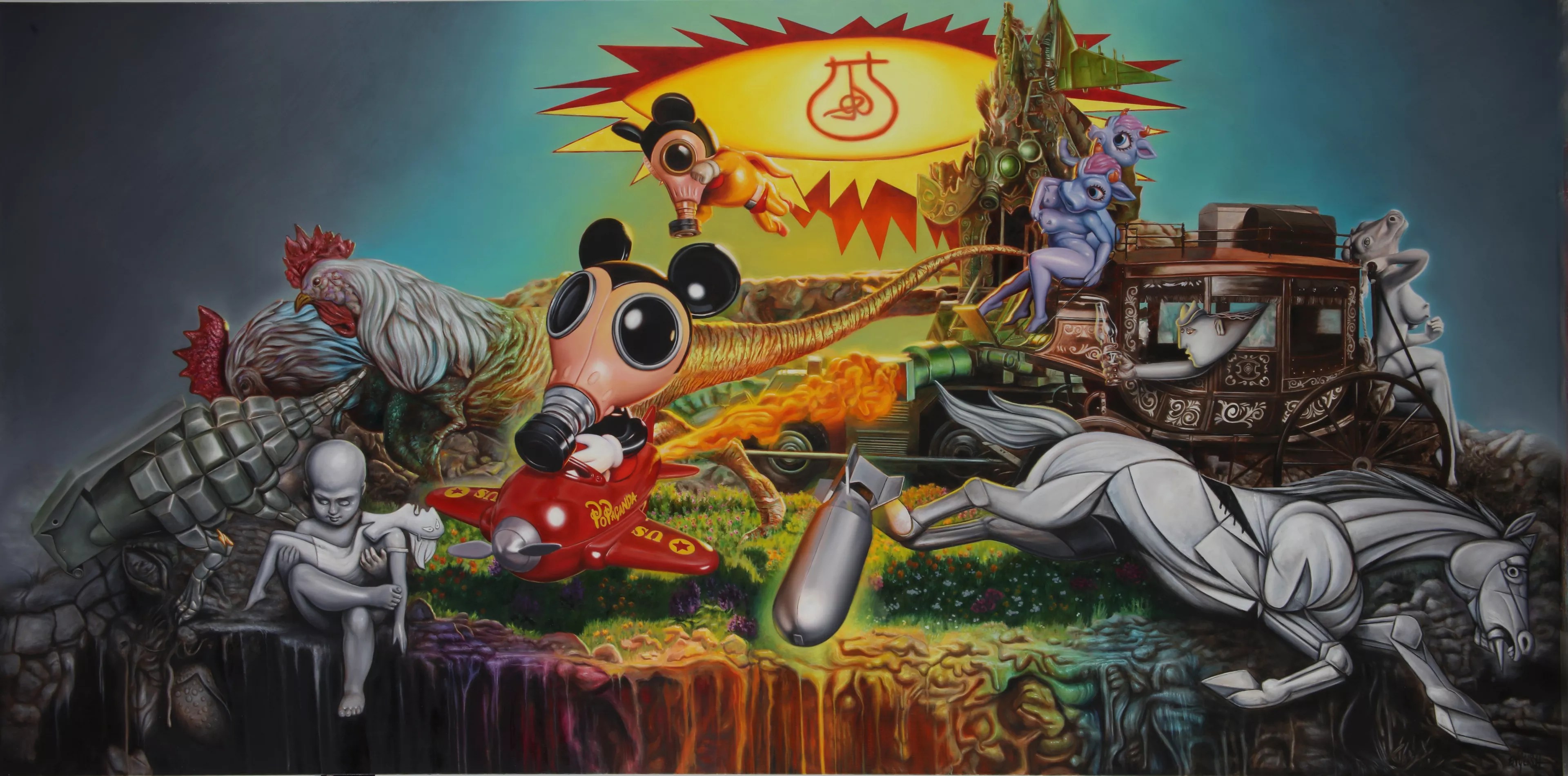 Don’t accuse Ron English of being an unsophisticated street artist. His works are more complicated than you might think upon first viewing. From his commentary on America’s obesity problem to politics to corporate kawaii, English exposes the man behind the curtain. And sometimes what he reveals is not a wonderful wizard.