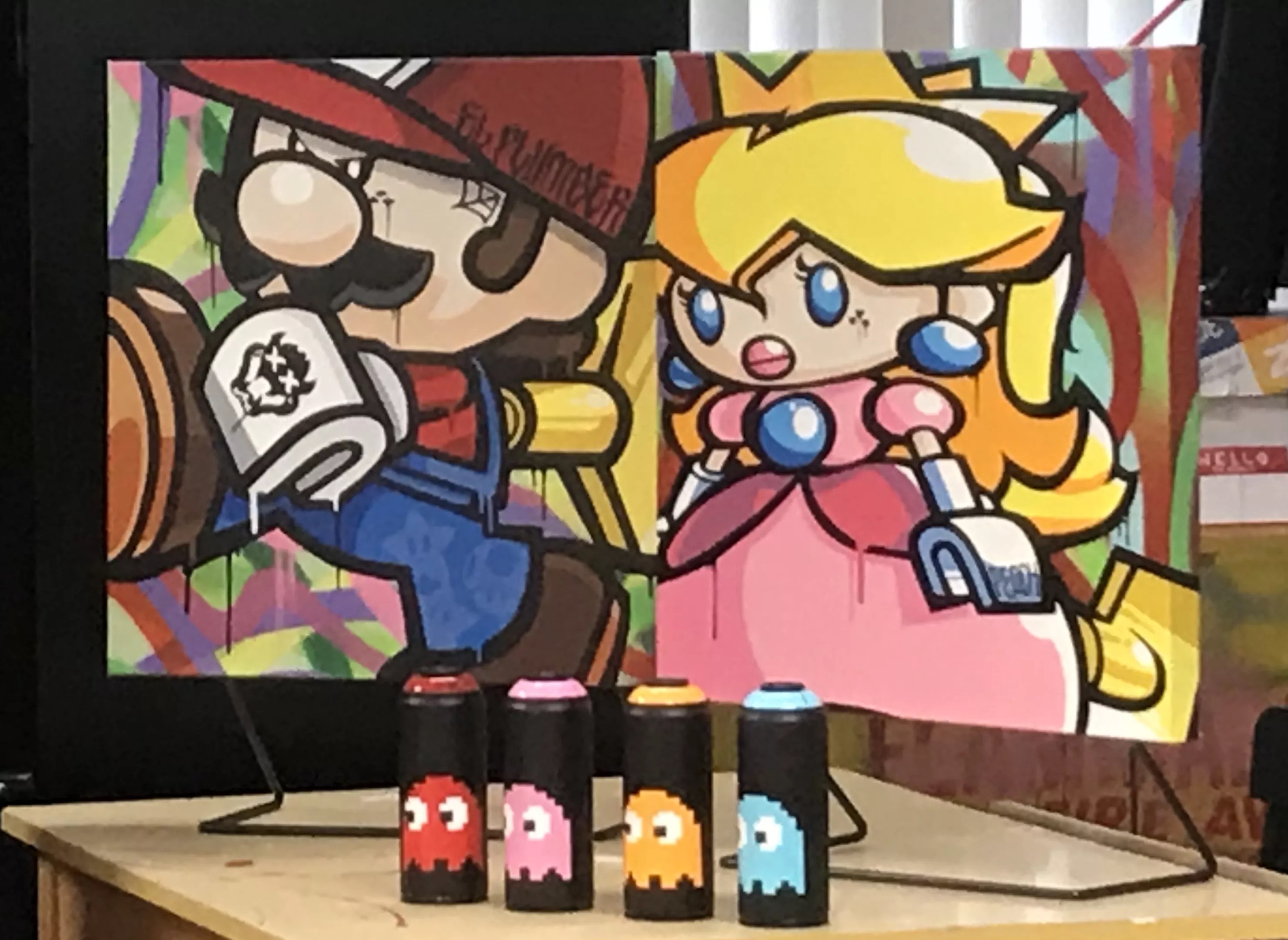 They’ve been working on the exhibit since late December, creating portraits of iconic video game characters and other pieces for the show. “We want to … help people time-travel back to the age of arcade games,” Such says.