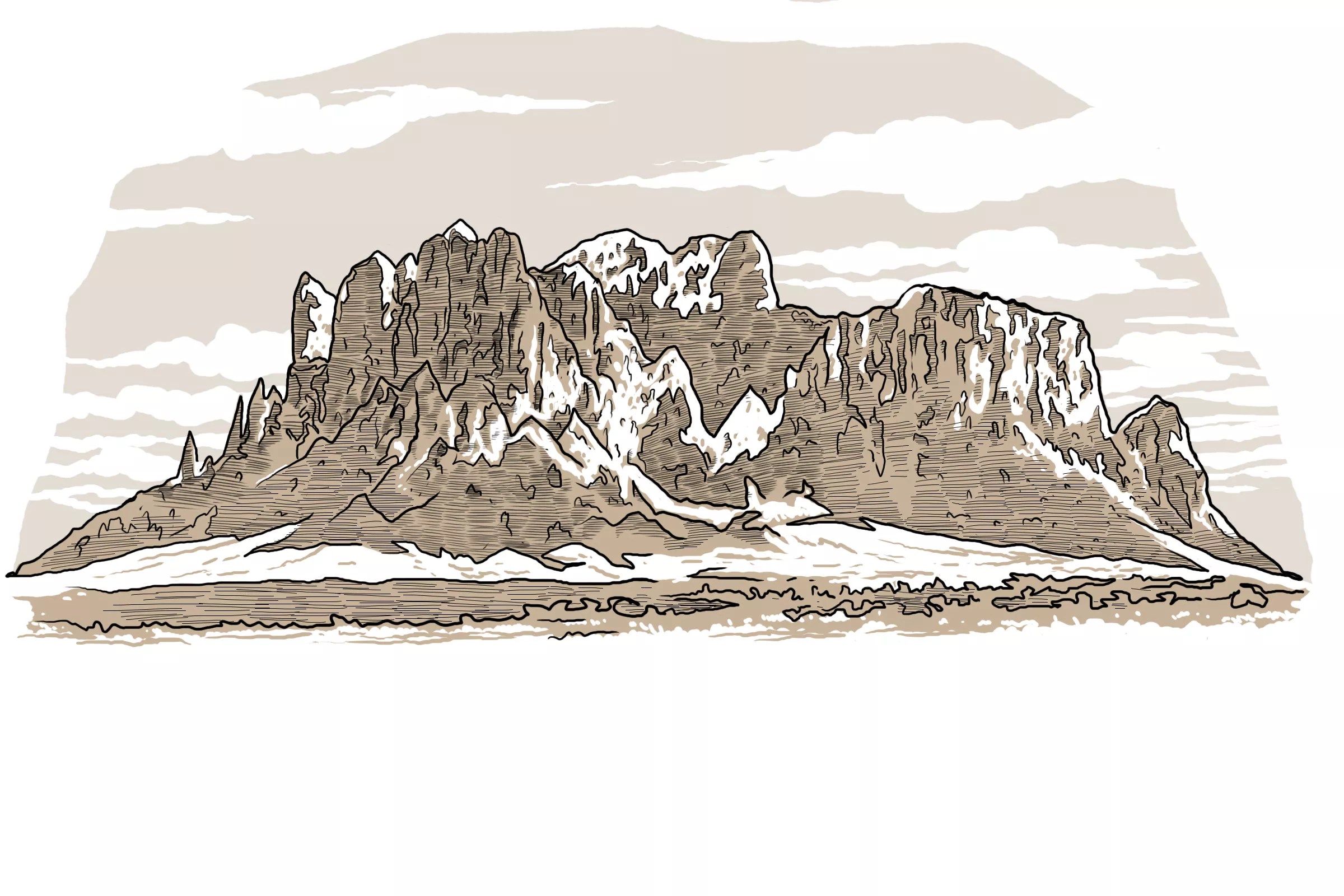 “The Pimas believed if you went up in those mountains, you’d disappear,” Johnston explains. “Their dead ancestors lived up there, and they knew that because they would hear strange sounds or see lightning coming from up there.” Salt River Valley farmers heard these stories in the late 19th century and dubbed the mountain range Superstition.