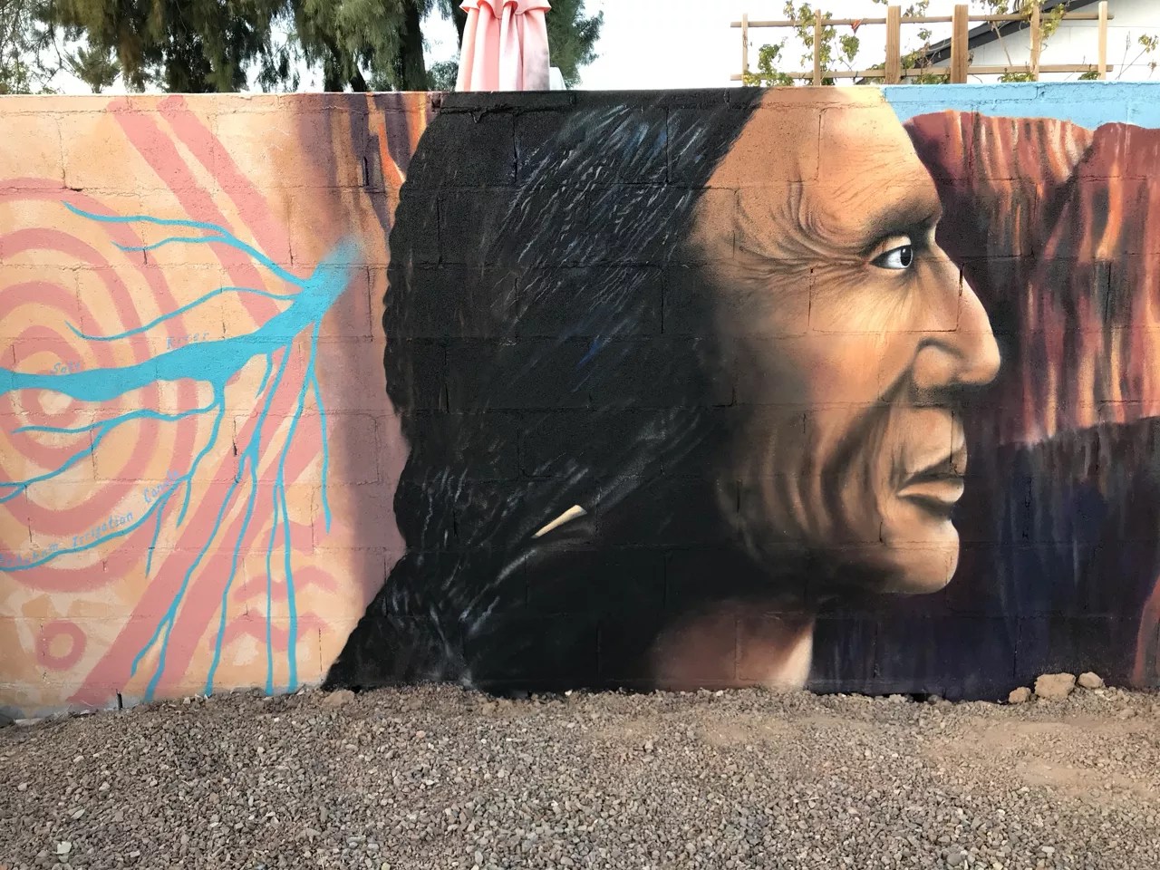 A new mural was unveiled during a March 20 ceremony at Barrios Unitas Park located near I-17 and 16th Street. The collaborative artwork was created as a monument honoring Indigenous knowledge and culture. Other murals completed recently include First Use = First Rights by Jeremie Bacpac Franco, which addresses Indigenous water rights and history. Her mural is located near the Third Avenue bridge for the Grand Canalscape.