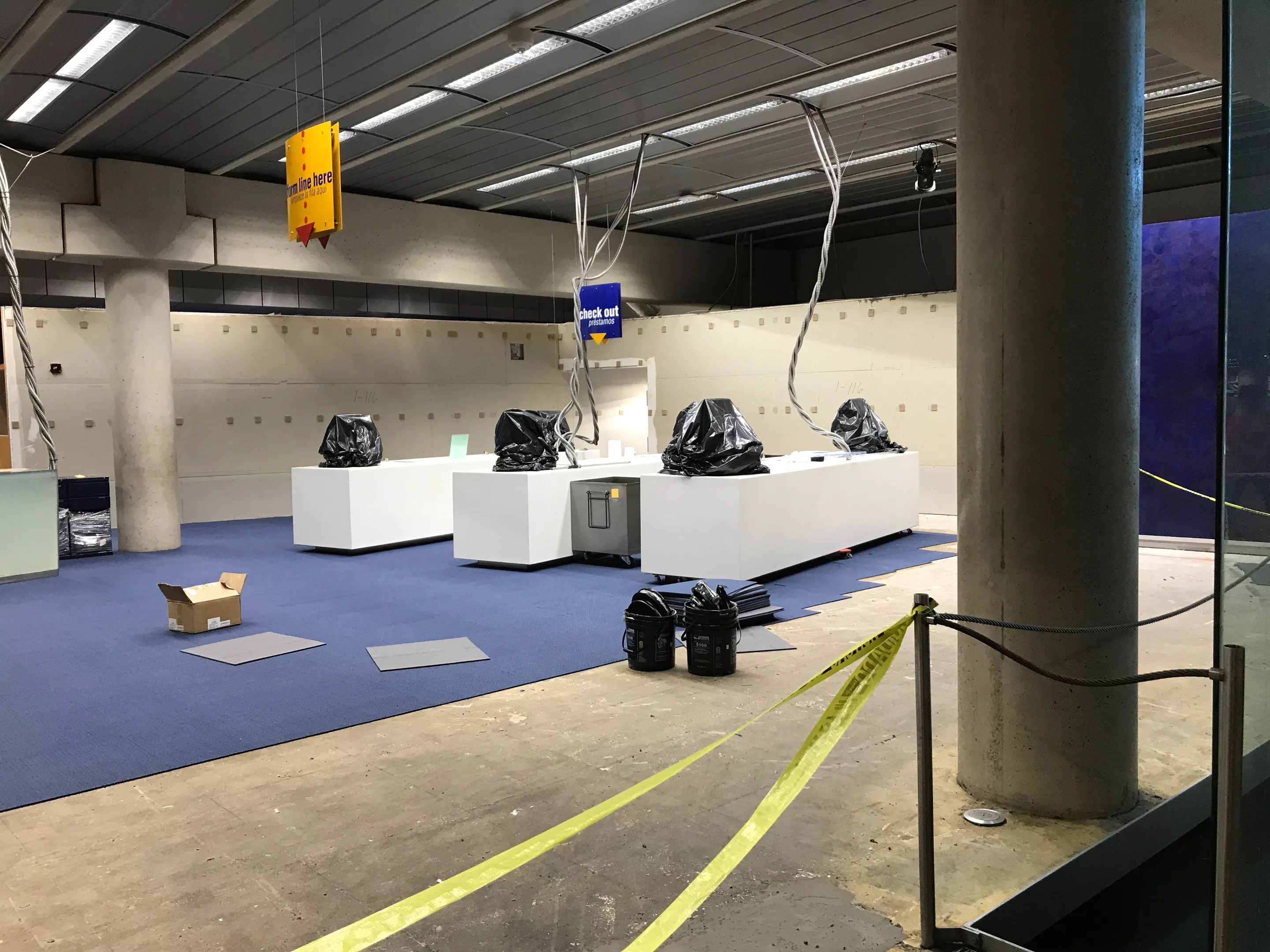 Renovations underway near the checkout stations at Burton Barr Central Library.