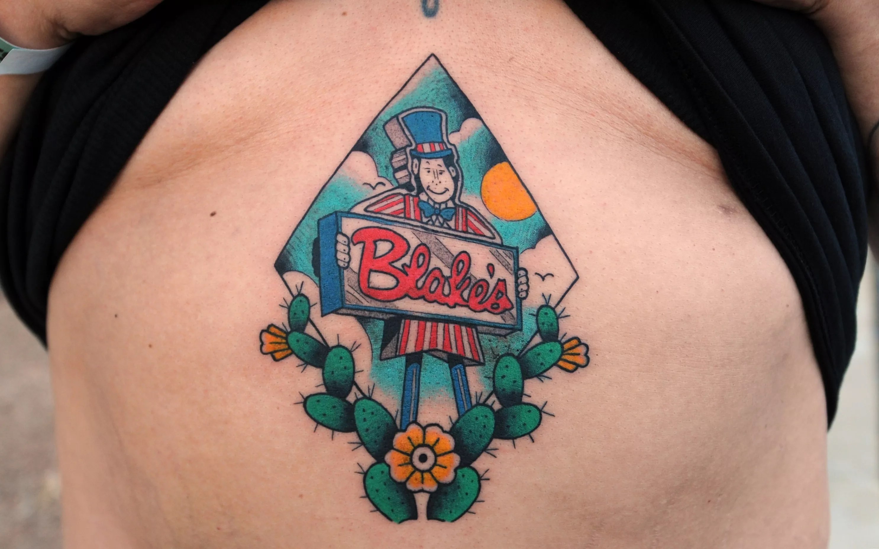 Phoenix resident Alvin Bitsue got a tattoo paying tribute to legendary New Mexico fast-food chain Blake’s Lottaburger.