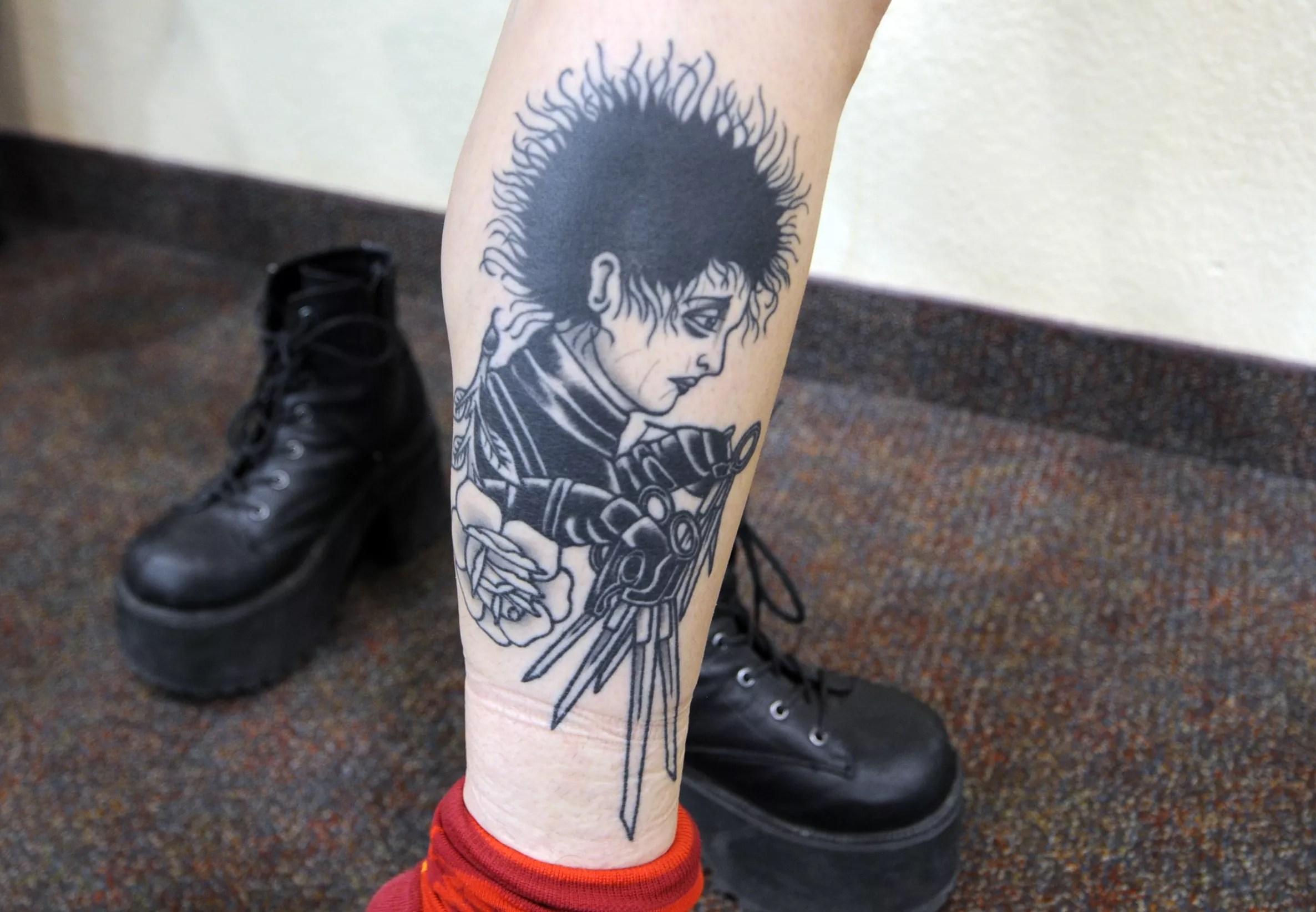 Andrew Morales of Good Time Tattoo in Scottsdale created this tattoo of Edward Scissorhands on the calf of Tempe resident Mireya Garcia Valenzuela.