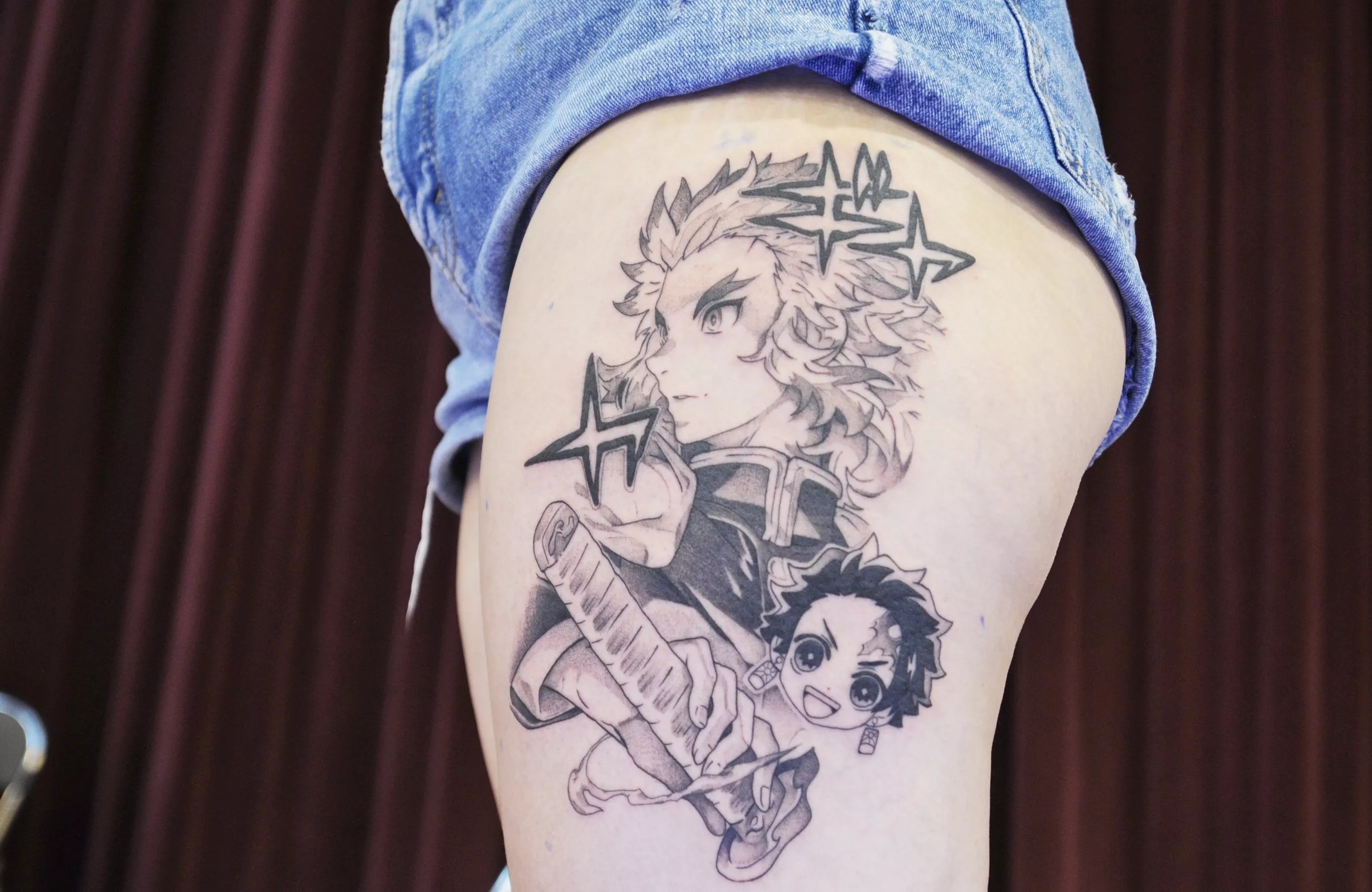 Camie Henson of Flagstaff shows off her tattoo of Kyojuro Rengoku from the anime “Demon Slayer: Kimetsu no Yaiba” by artist Dyson Navarro of Avail Tattoo Studio.