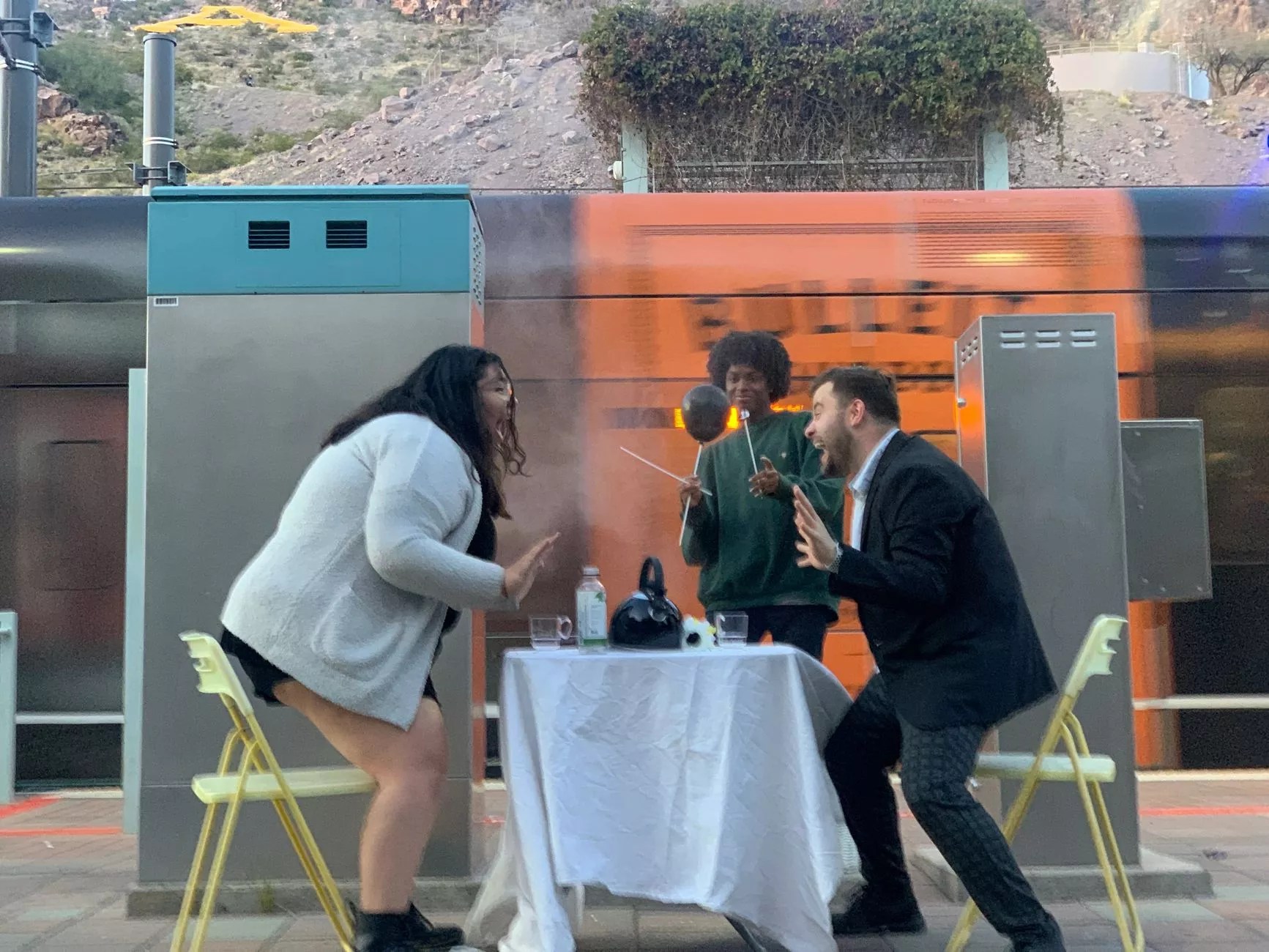 Rising Youth Theatre performed the latest iteration of its Light Rail Plays, which were first launched in Phoenix in 2014, in March. Several pairs of professional artists and youth acted out original five-minute plays at several Tempe Transit Center sites, incorporating theater, music, and dance as they engaged community members of all ages. Some viewers made plans to attend ahead of time, but others simply joined the growing crowd after stumbling on a theatrical experience that was wonderfully inventive and accessible.