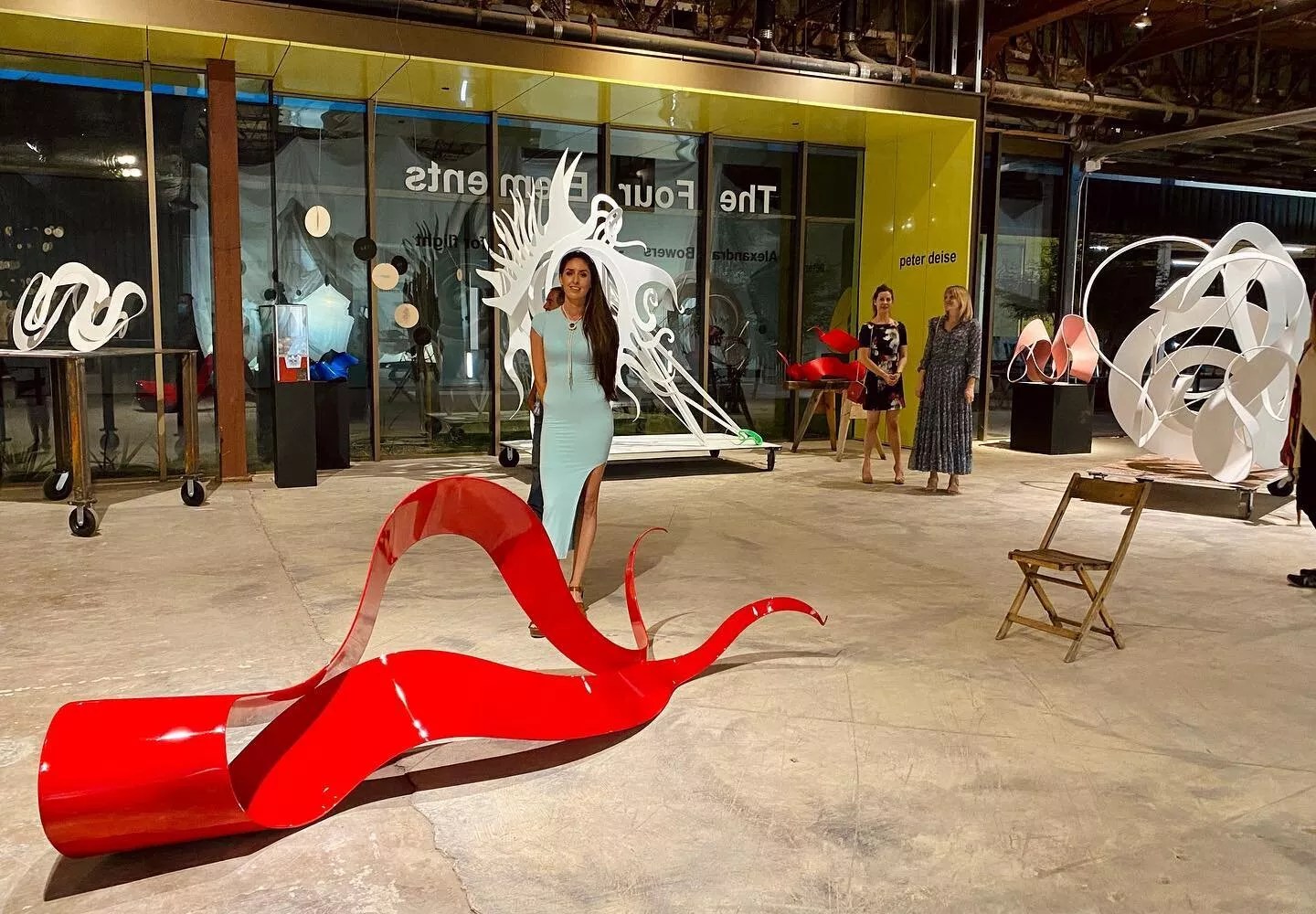 Artist Alexandria Bowers with “The Four Elements” at Park Central.