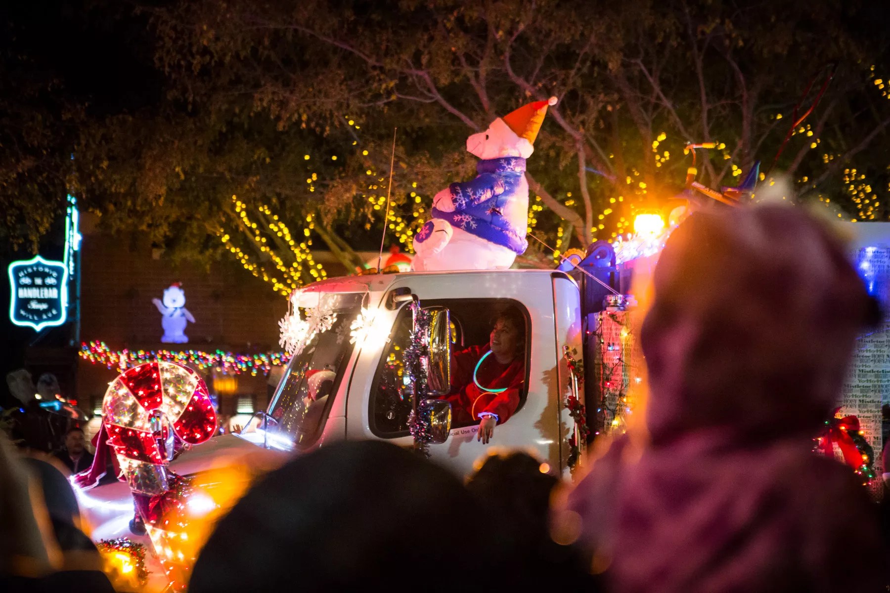 One of the parade floats zipping by during Fantasy of Lights.